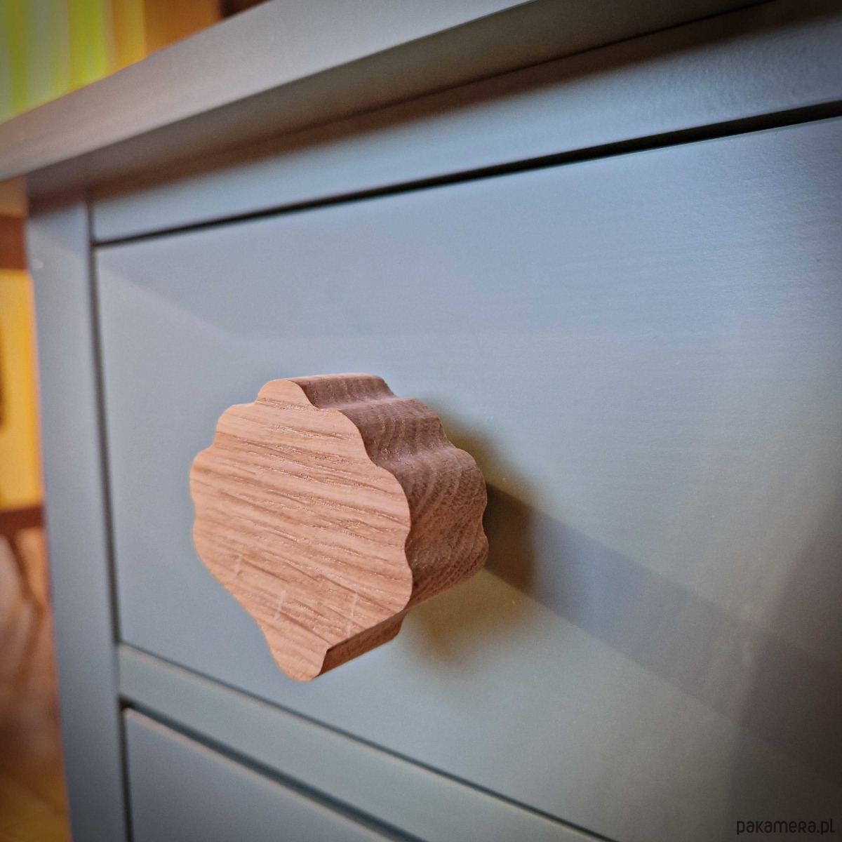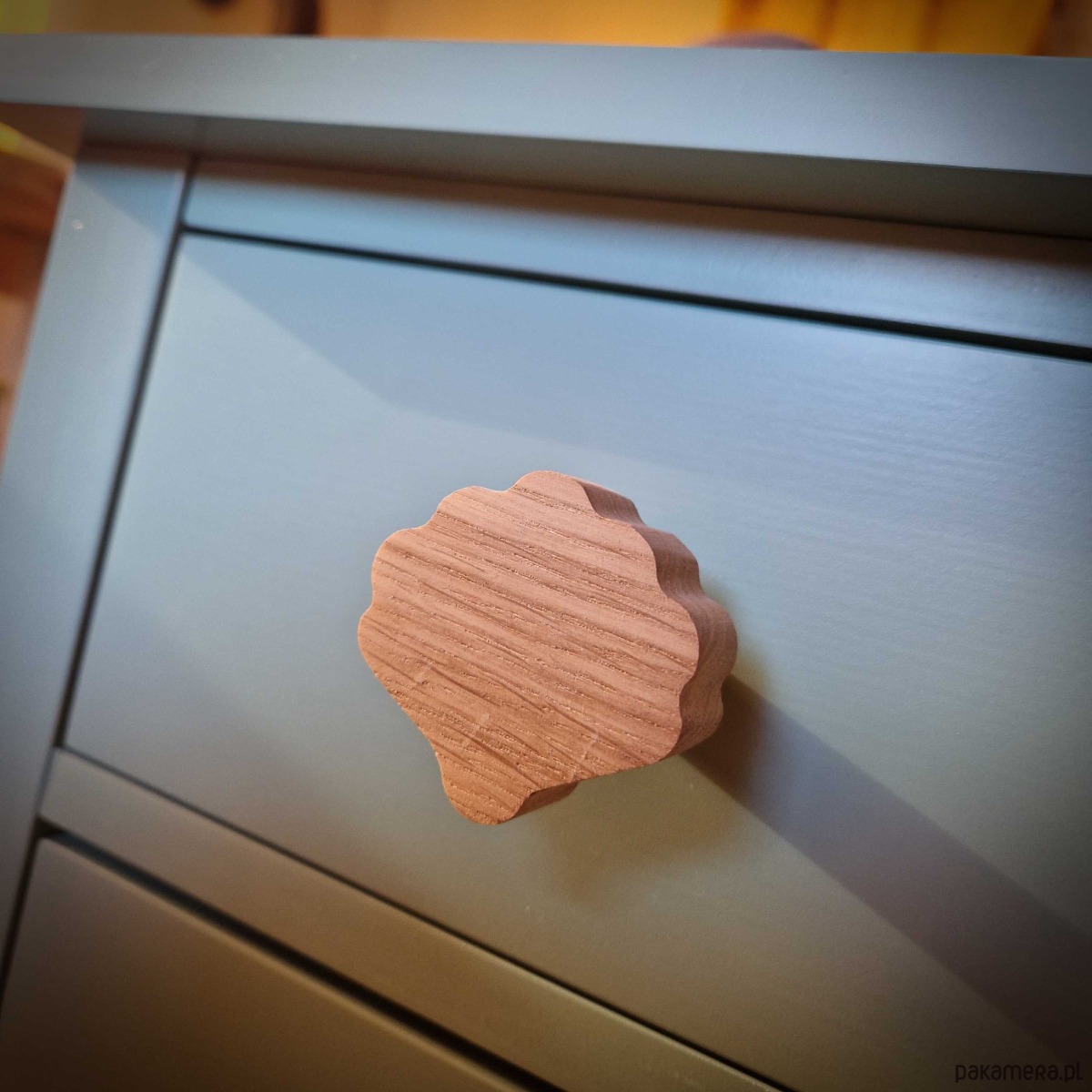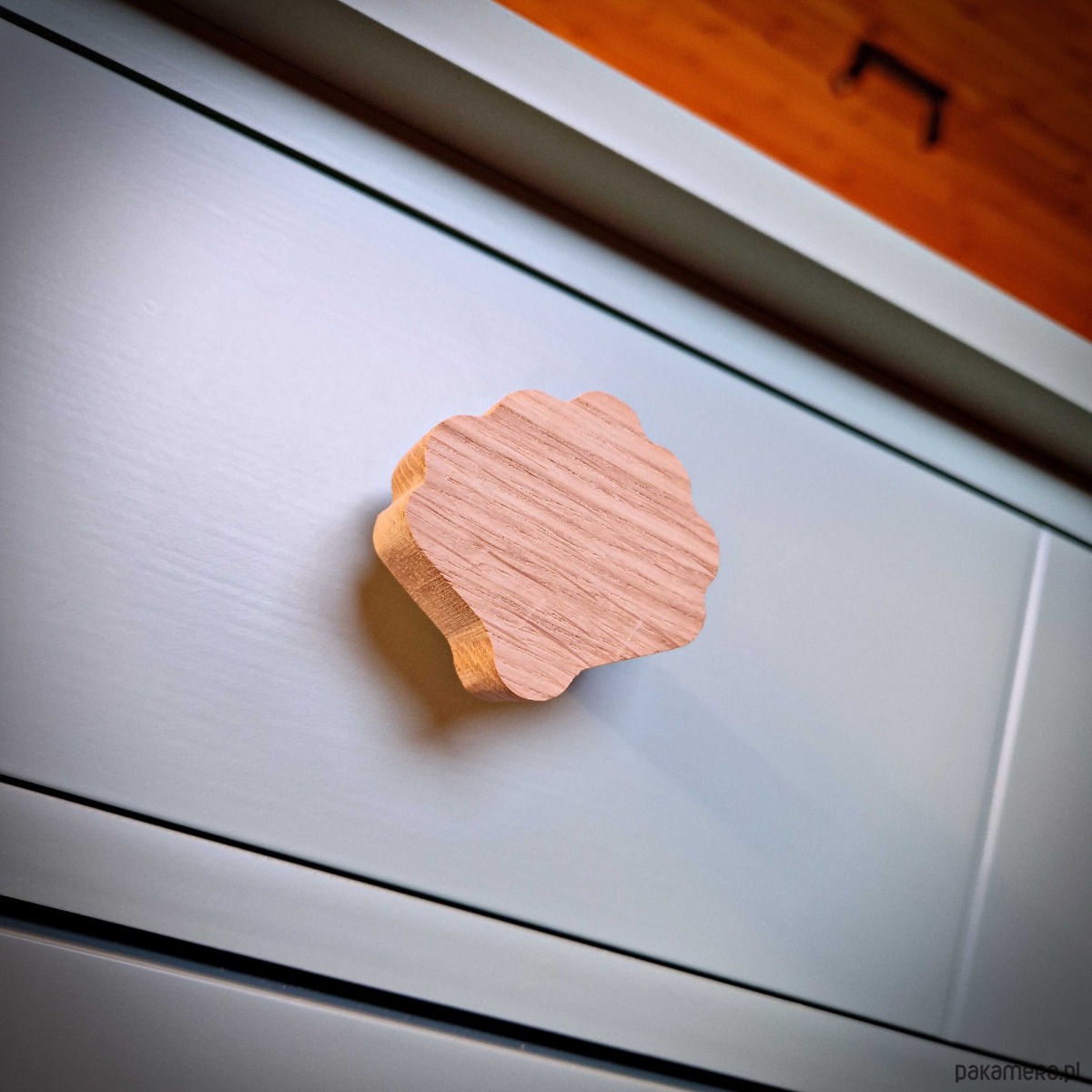 Drewniana gałka do mebli „Muszla” – morski klimat w naturalnym wydaniu