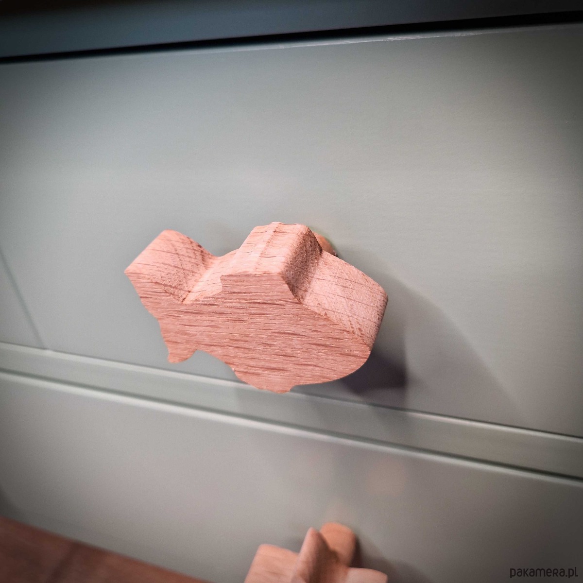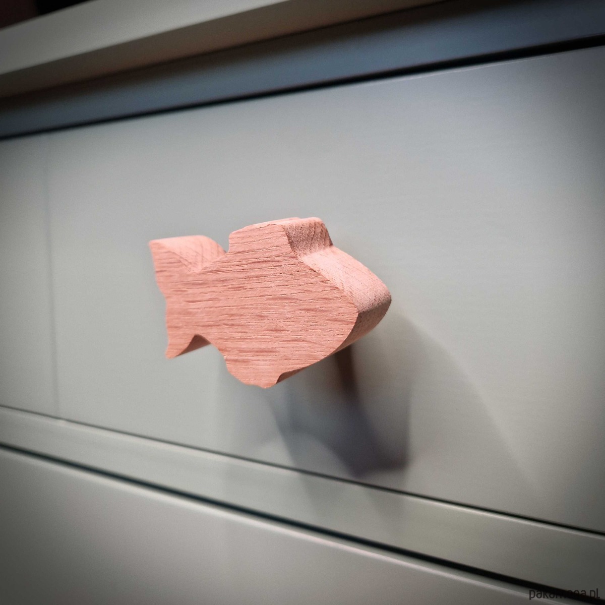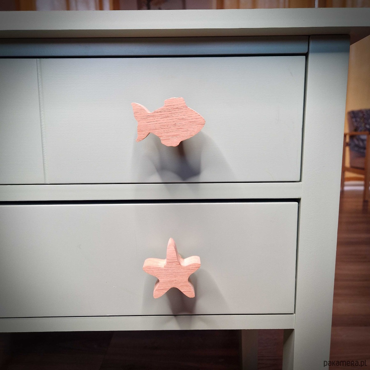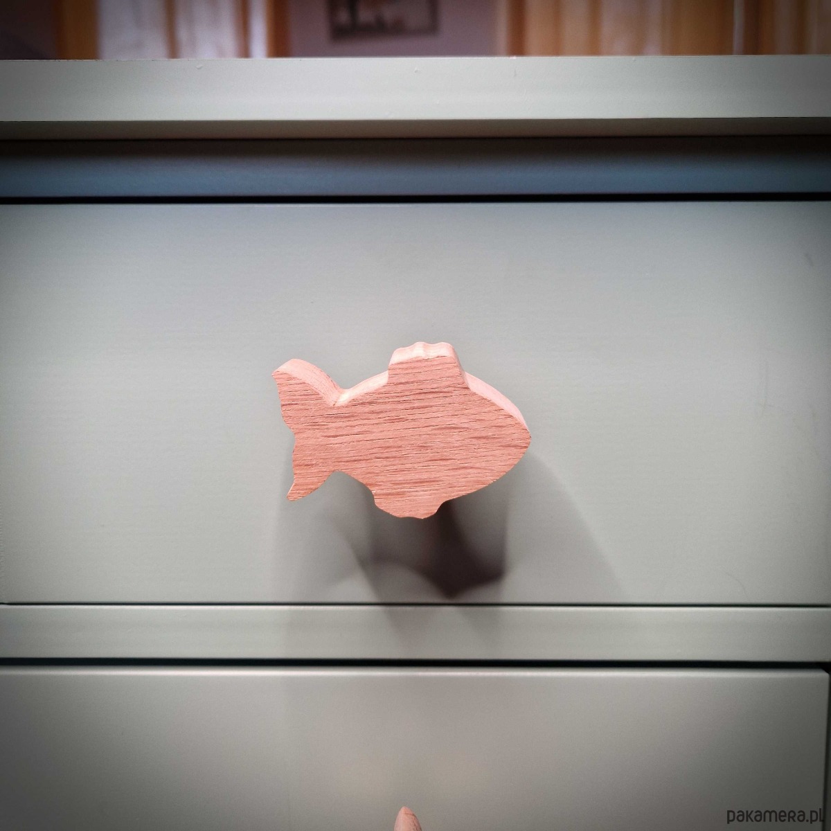 Drewniane gałki do mebli, z drewna, MORSKIE, rybka