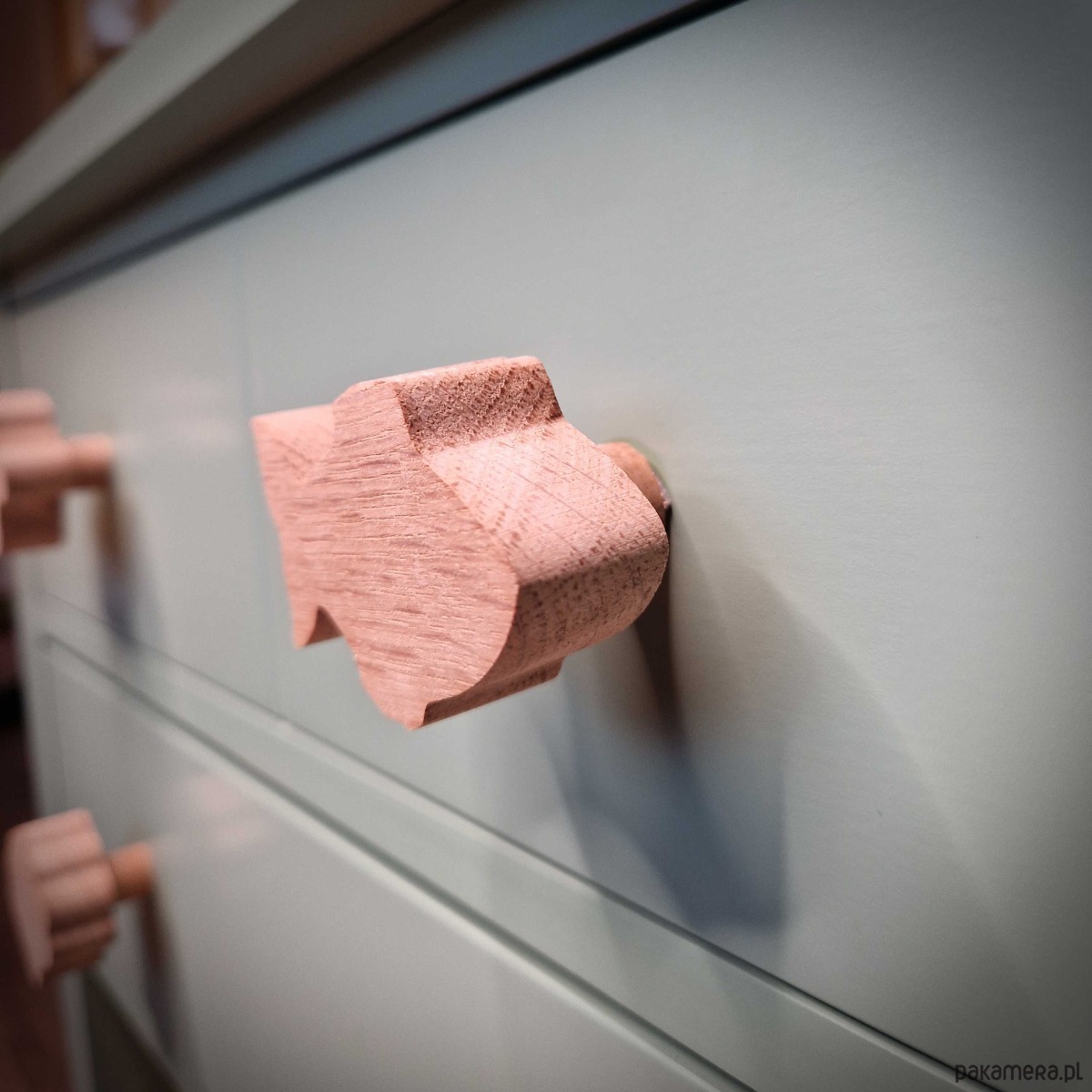 Każda gałka powstaje na zamówienie w naszej pracowni, co pozwala nam zadbać o każdy detal. Na życzenie możemy wykonać komplet z jednej deski, aby wszystkie elementy miały ten sam odcień i strukturę drewna. To właśnie takie drobne detale nadają wnętrzu wyjątkowy, rzemieślniczy charakter.