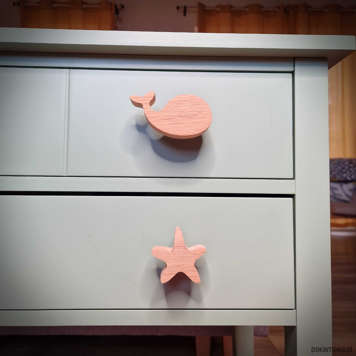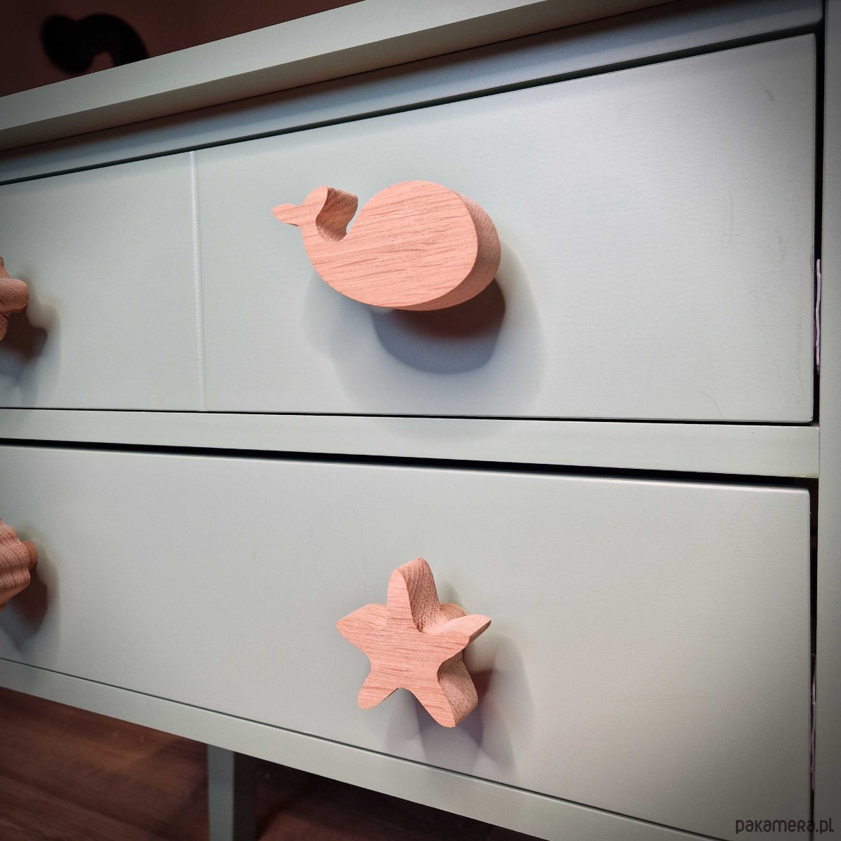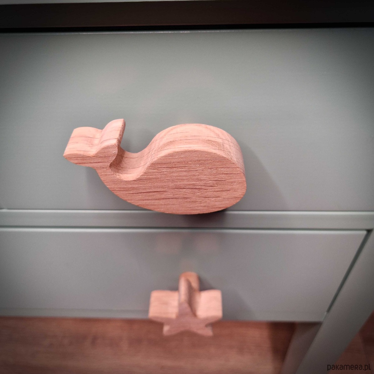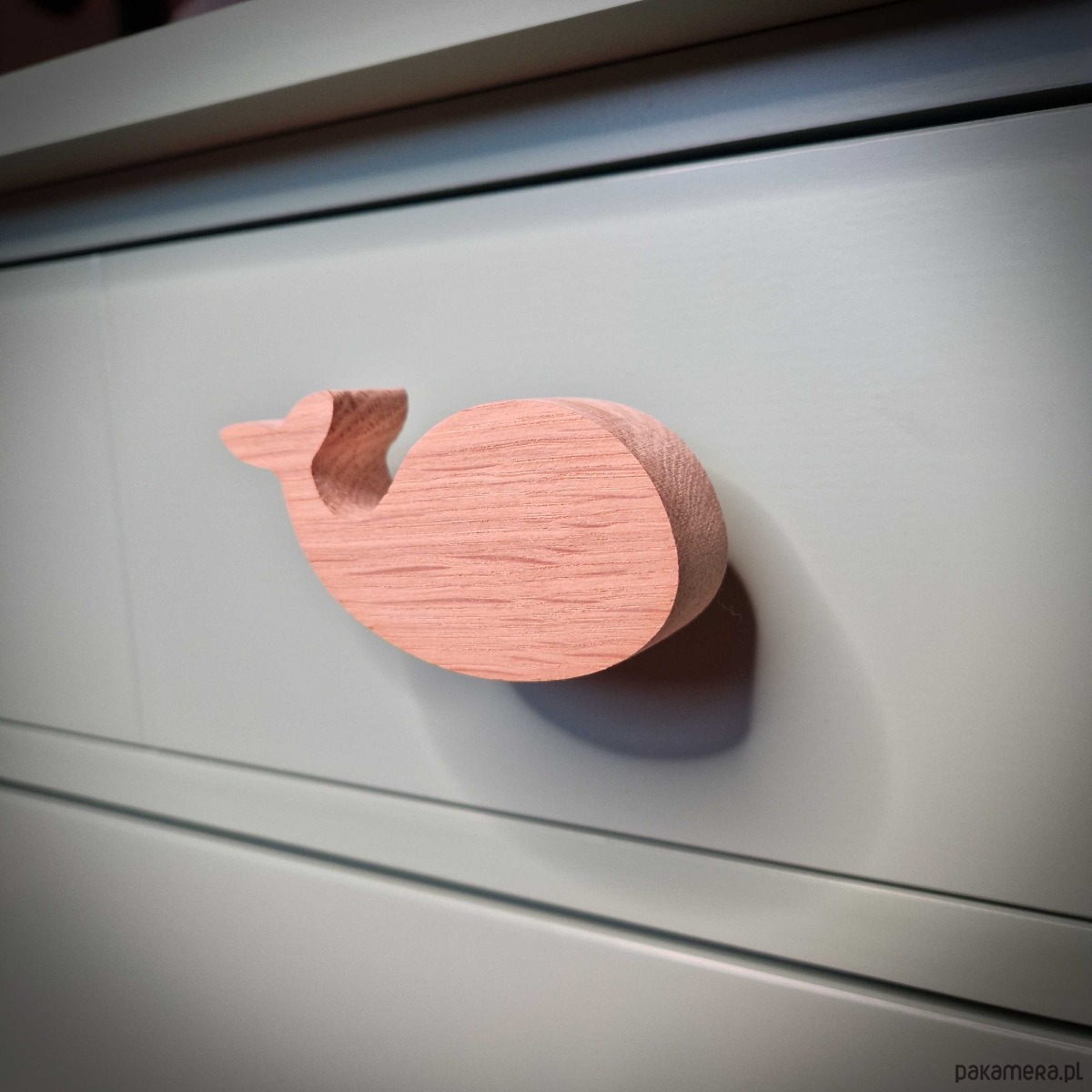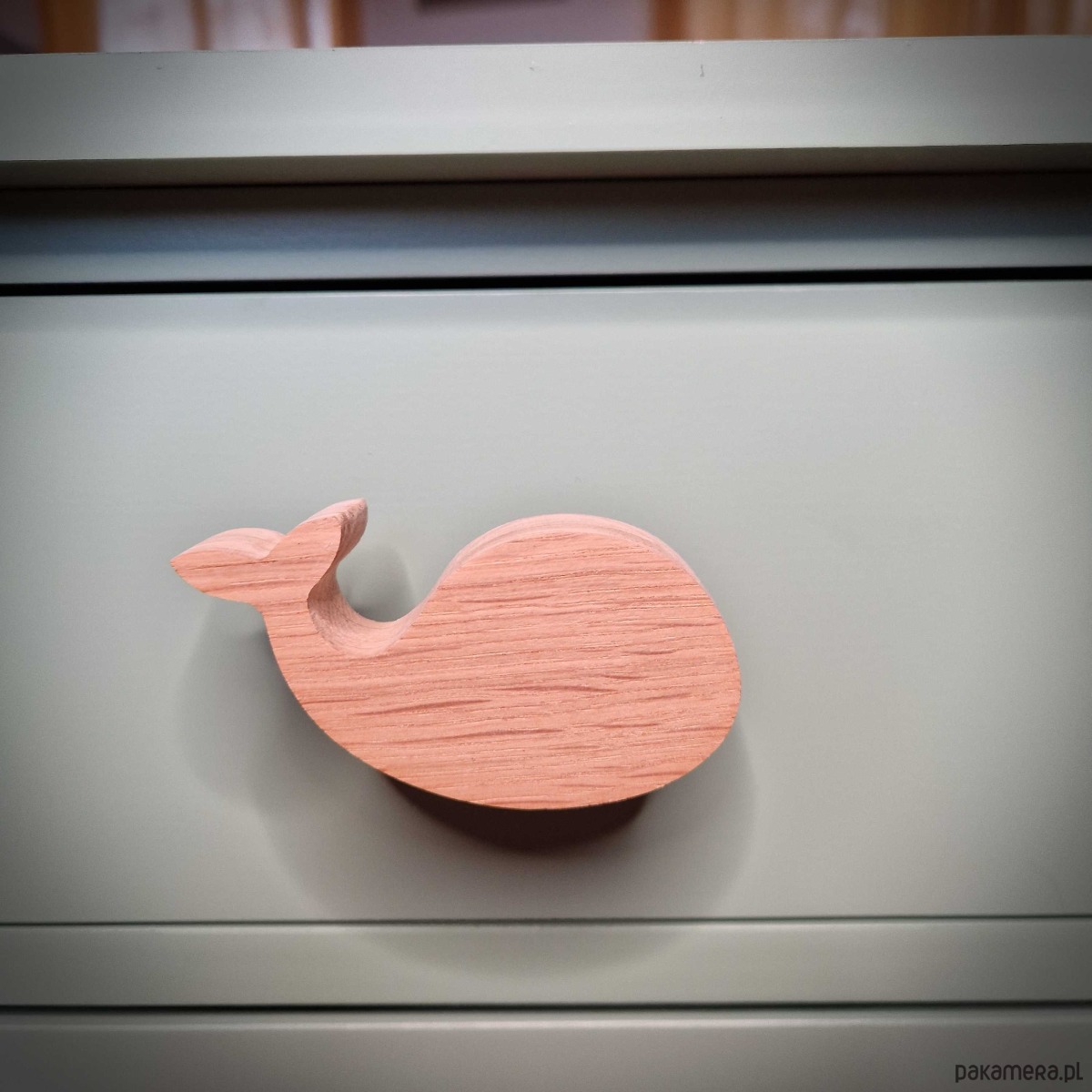 Drewniane gałki do mebli, z drewna, MORSKIE, wieloryb