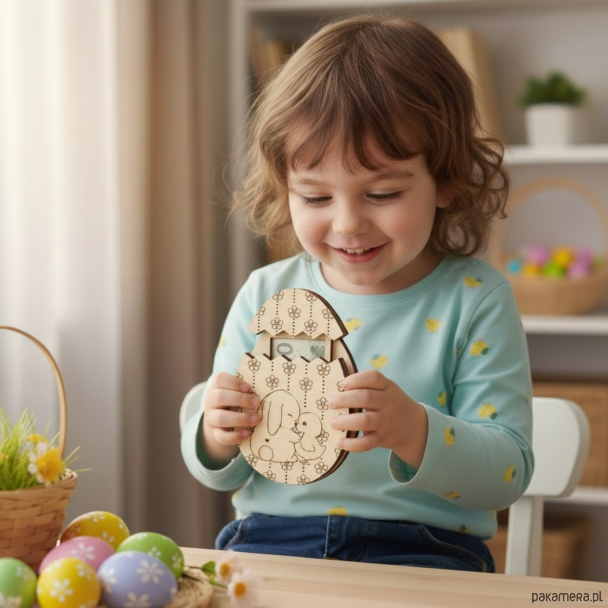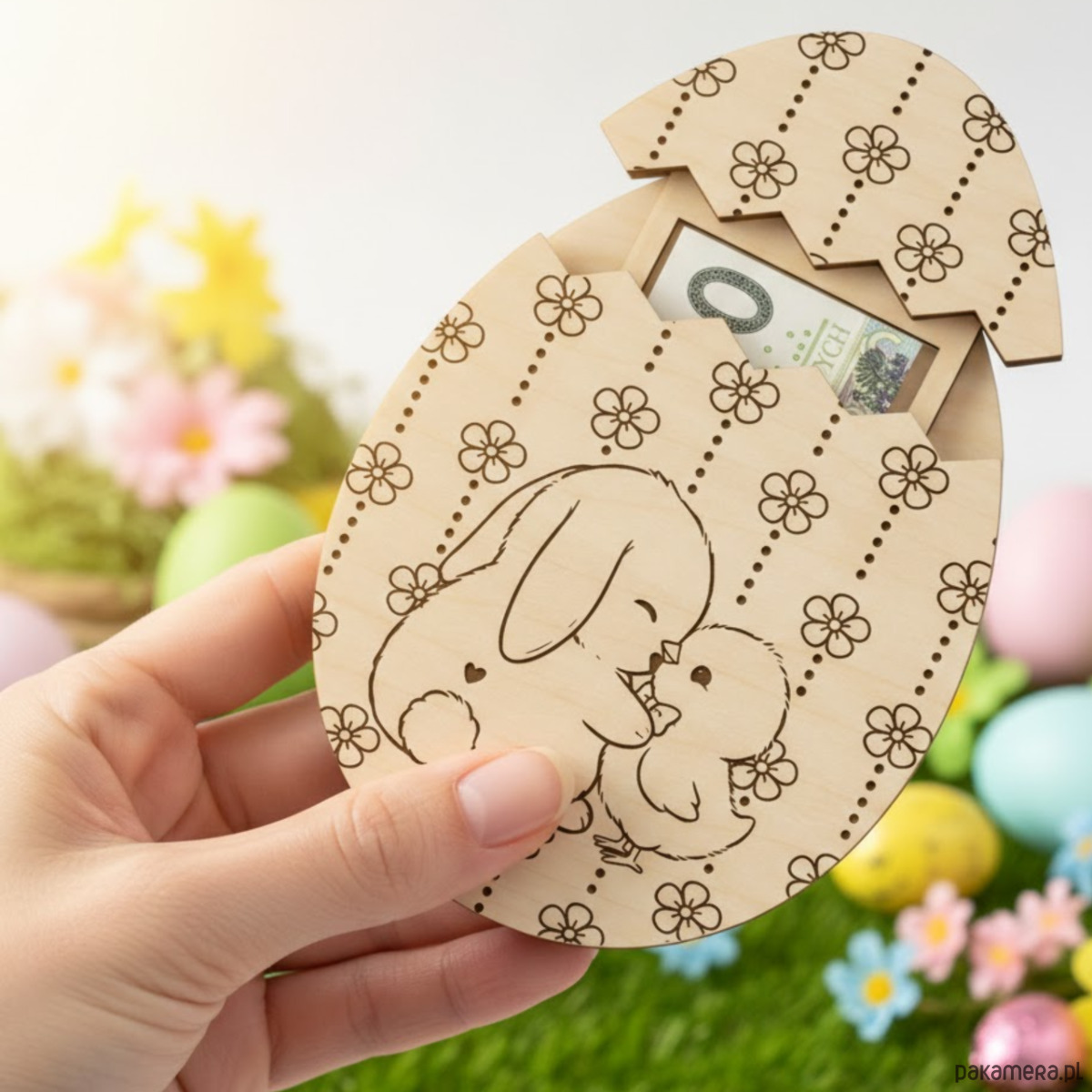 Drewniane Jajko Bon Wielkanocny Etui Pudełko na Pieniądze Banknoty Prezent