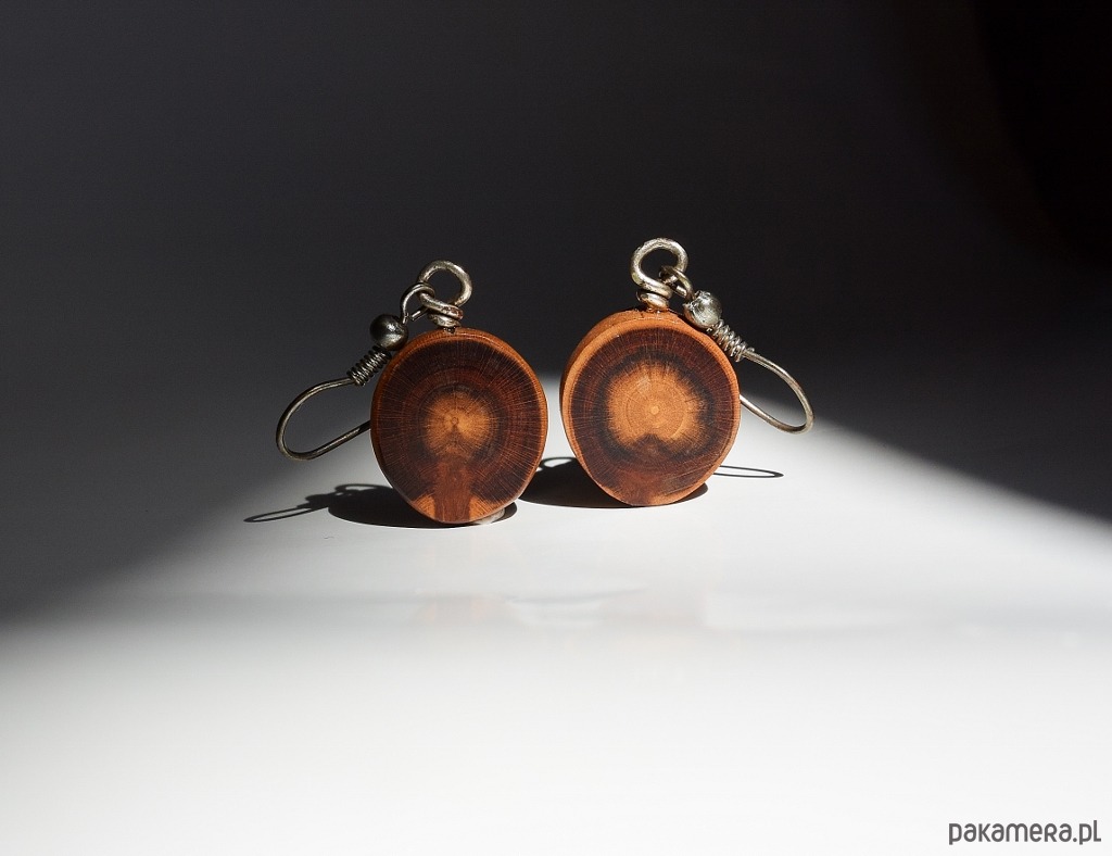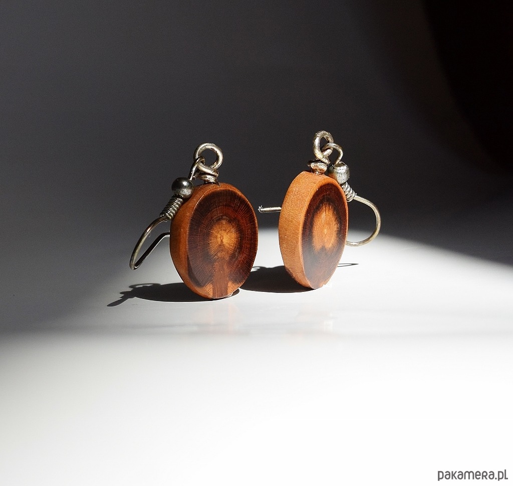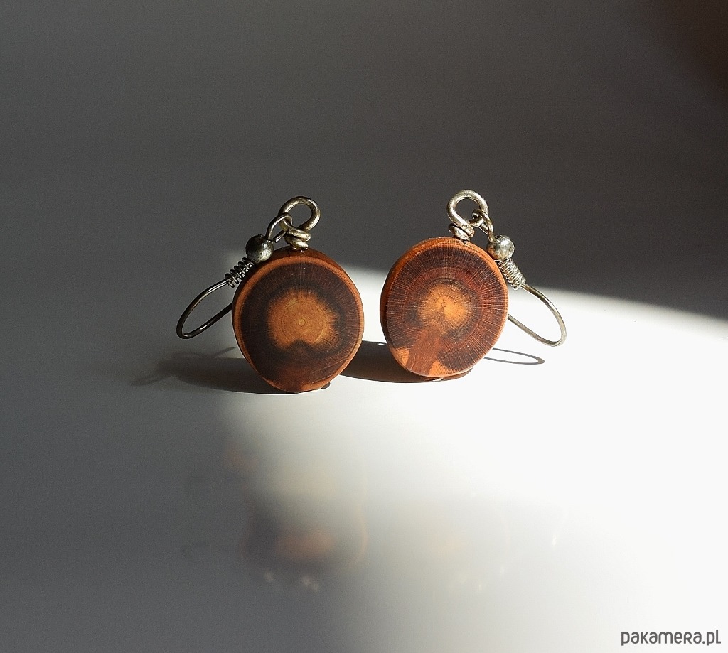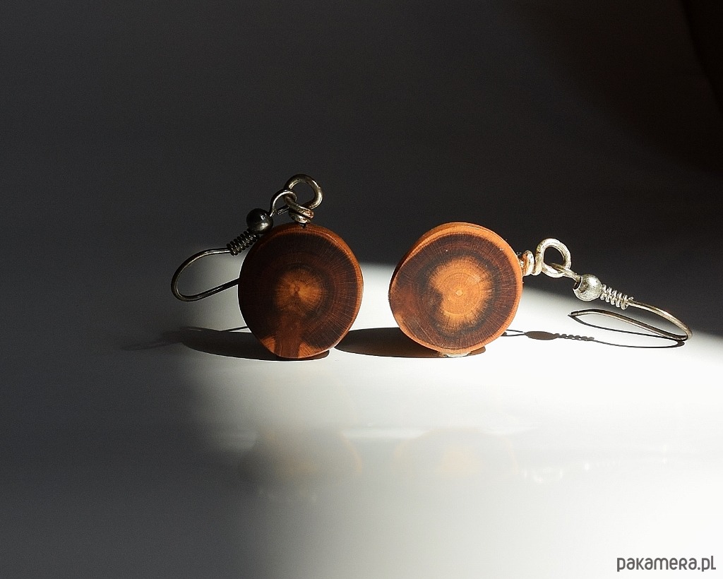 Kolczyki wykonane zostały z drewna śliwy. Piękny rysunek namalowany przez naturę sprawił, że są wyjątkowe. Jeśli lubicie zobaczyć coś w drewnie, to przypatrzcie się uważnie, bo ja zobaczyłam na jednym postać w tunelu (na pierwszym zdjęciu kolczyk po lewej stronie), a na drugim światło w tunelu (postać już poszła), a może to latarnia, ale może Ty zobaczysz zupełnie co innego :). Drewno zabezpieczone zostało naturalnymi woskami i wypolerowane. Bigle są ze stali chirurgicznej, więc nie powodują uczulenia i nie ciemnieją podczas noszenia.