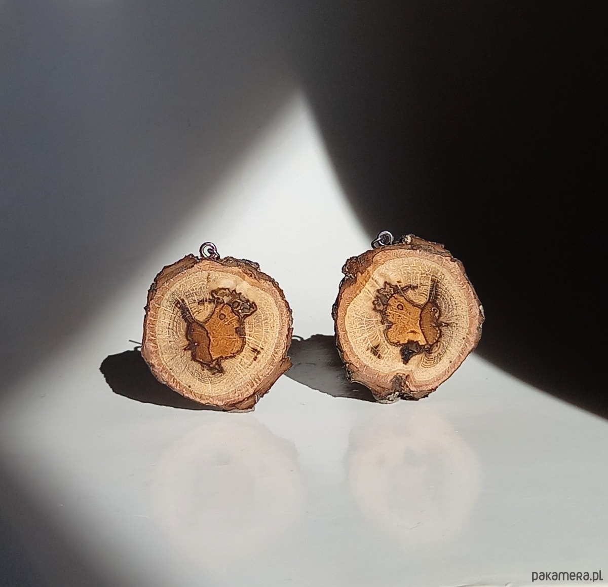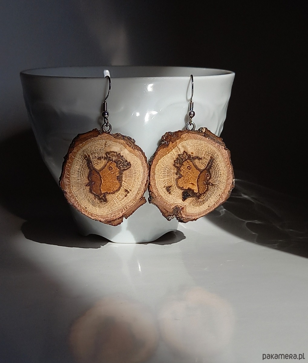Drewniane kolczyki - rysunki natury, abstrakcja