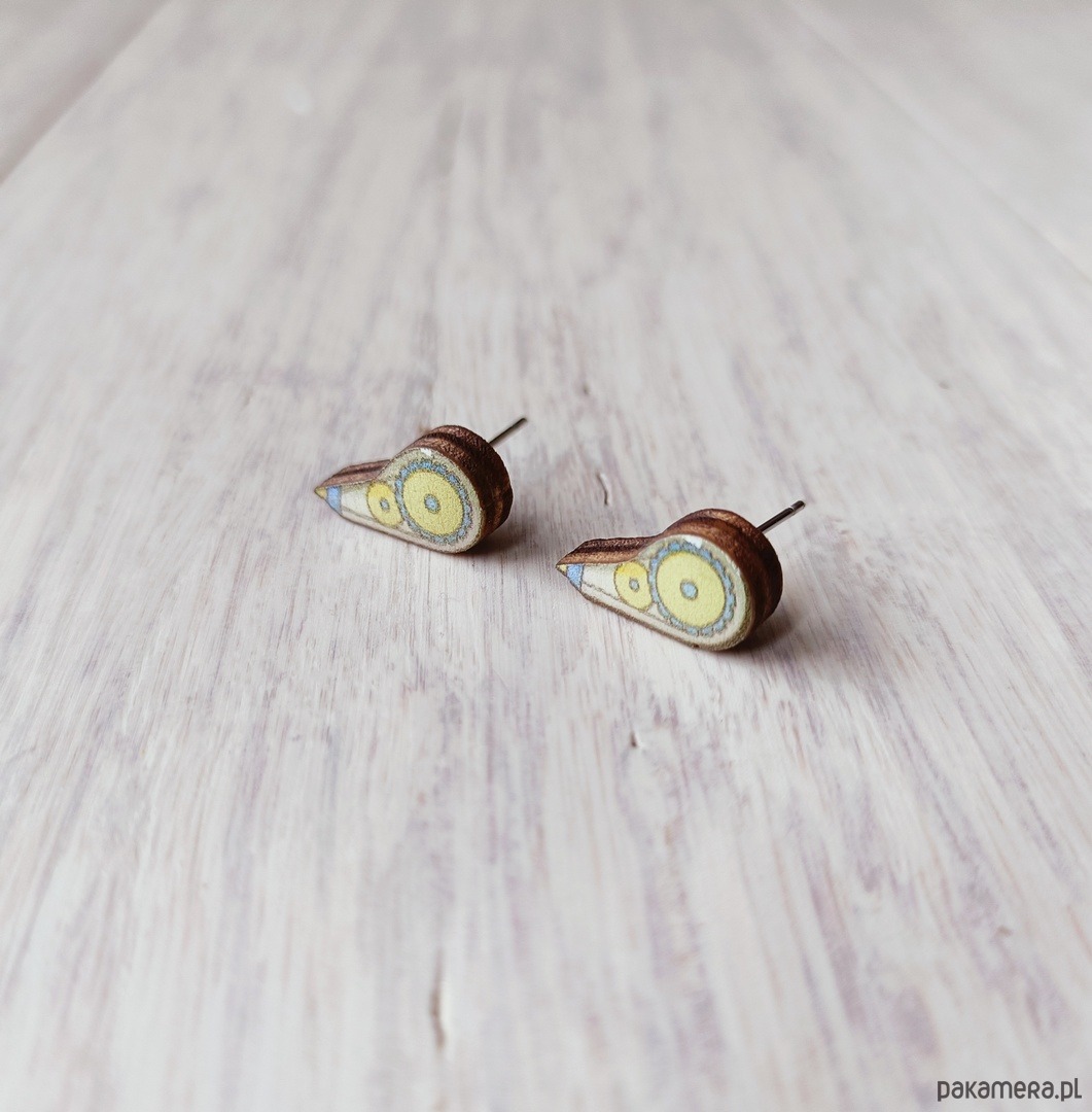 Wyjątkowe małe drewniane kolczyki- sztyfty z kolekcji DZIEŃ NAUCZYCIELA