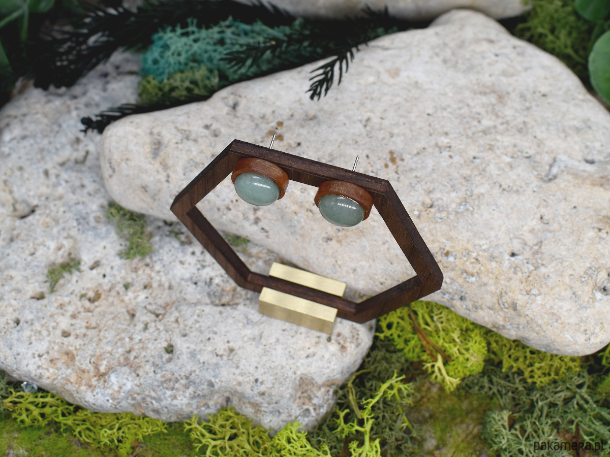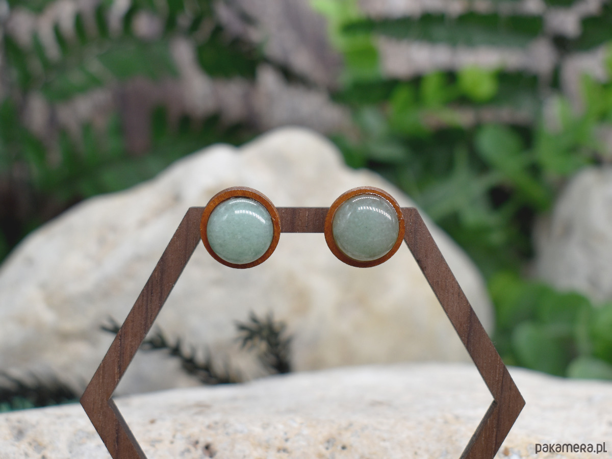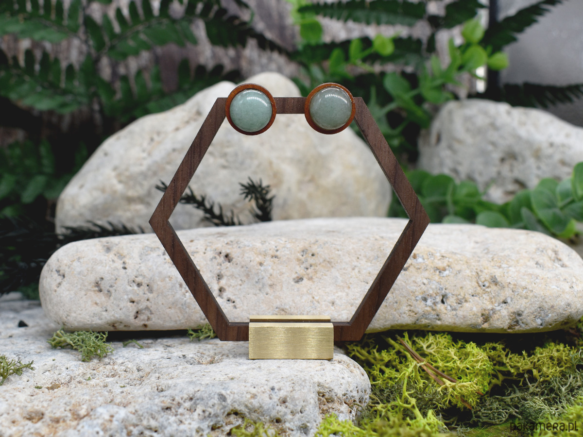 Drewniane kolczyki sztyfty z kamieniem / awenturyn