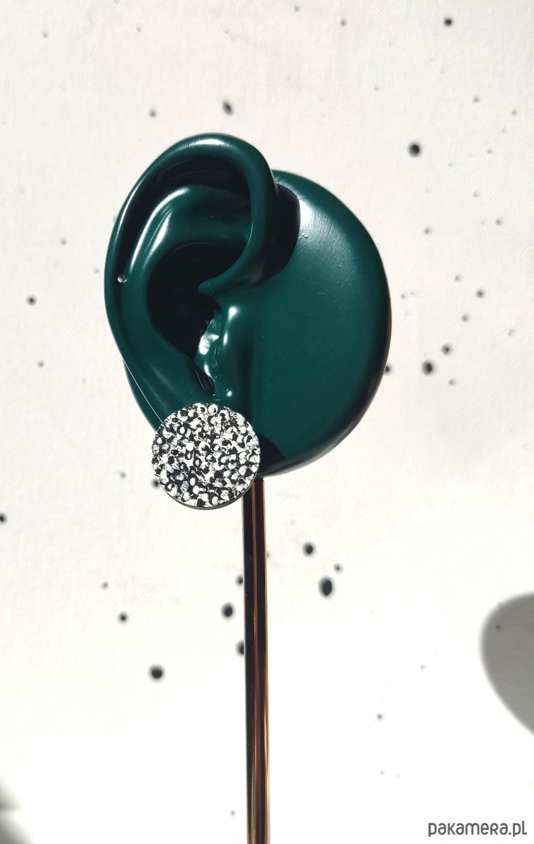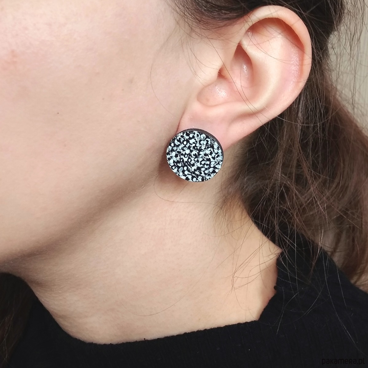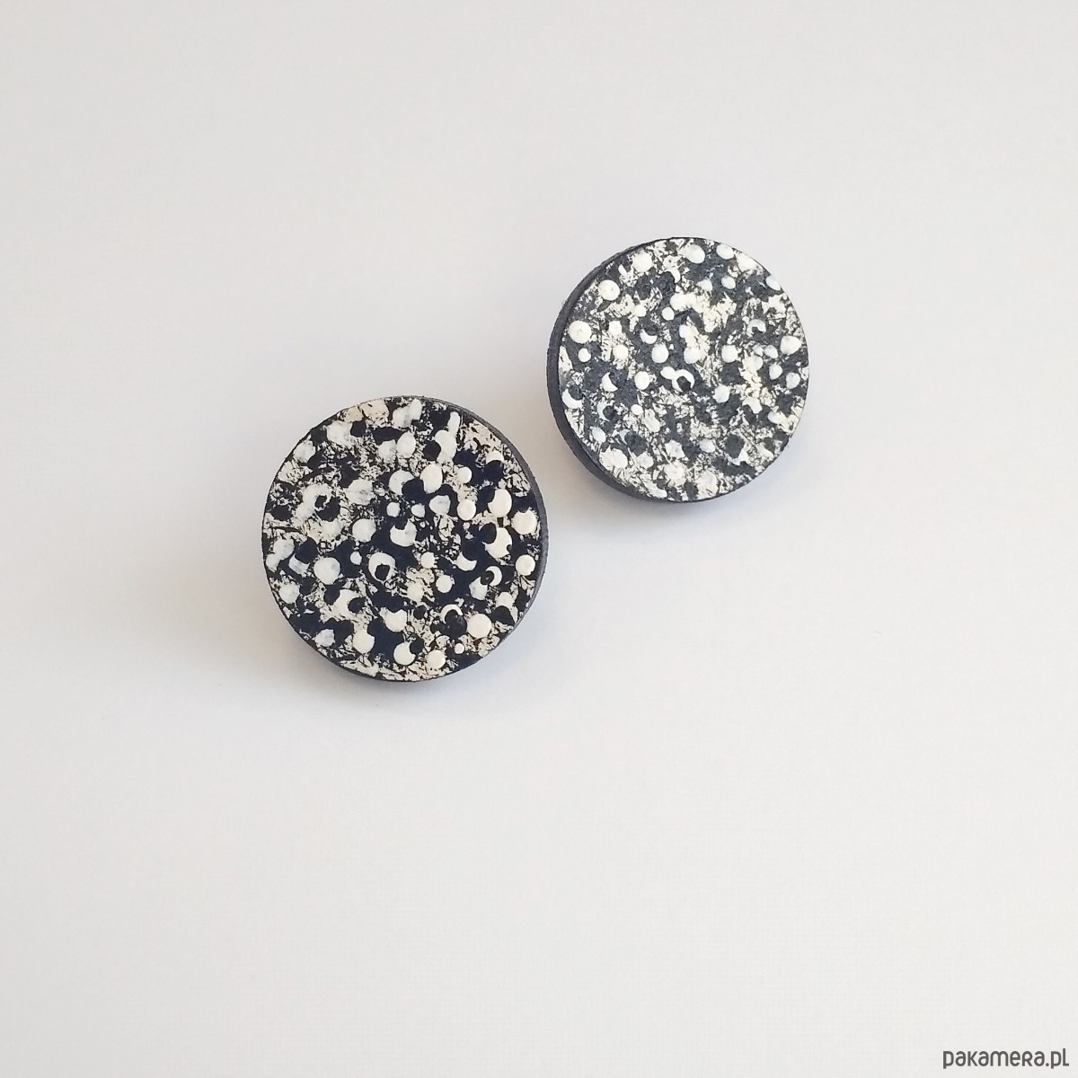 Kolczyki ręcznie malowane w czarno-biały wzór. Średnica 2 cm. Sztyfty ze stali chirurgicznej.