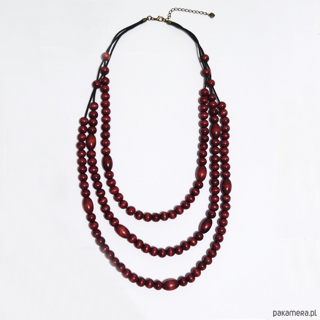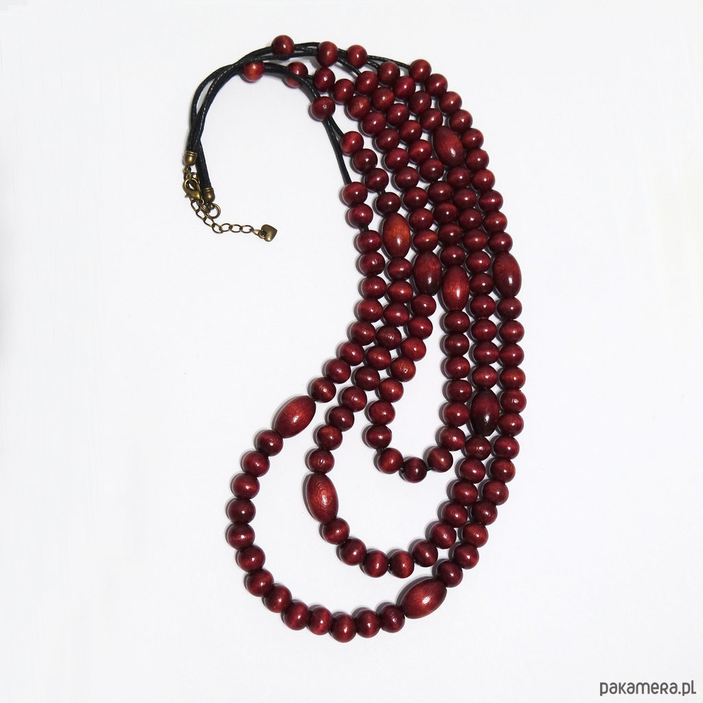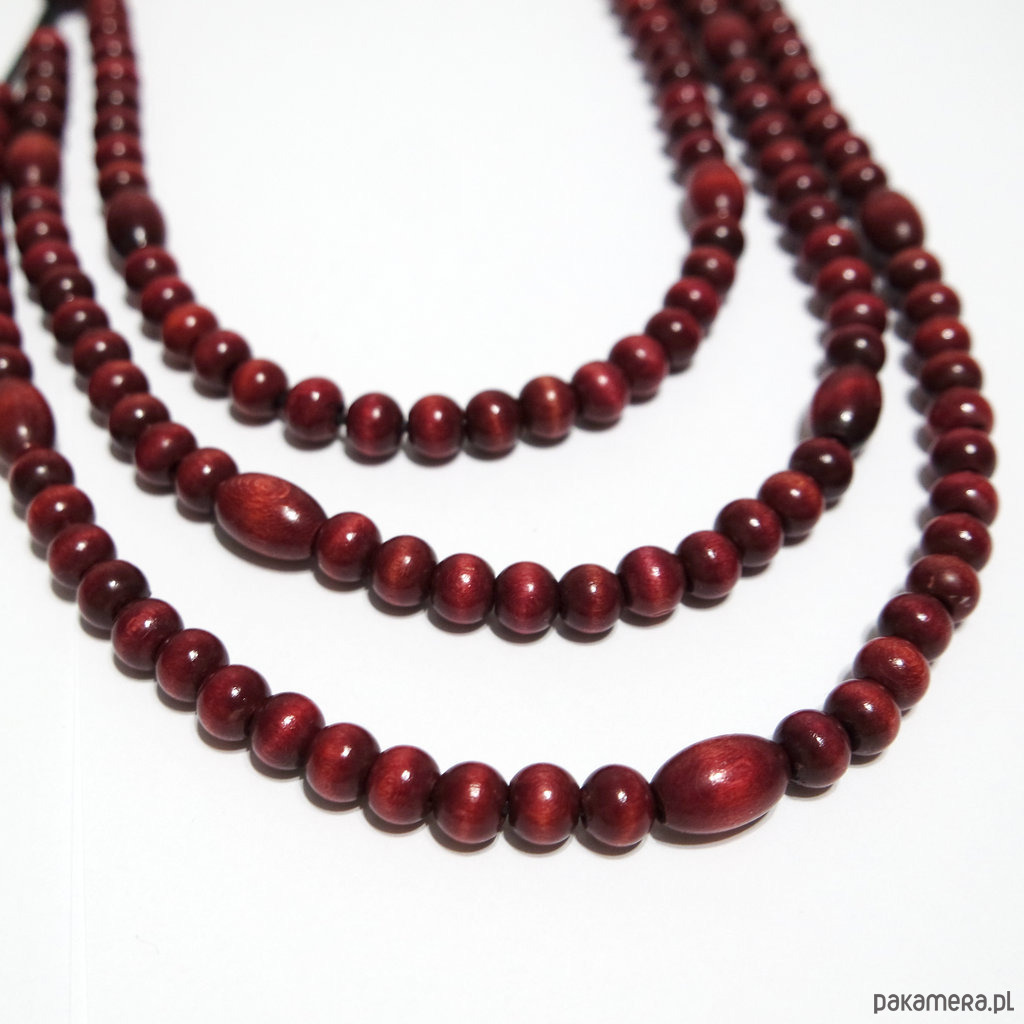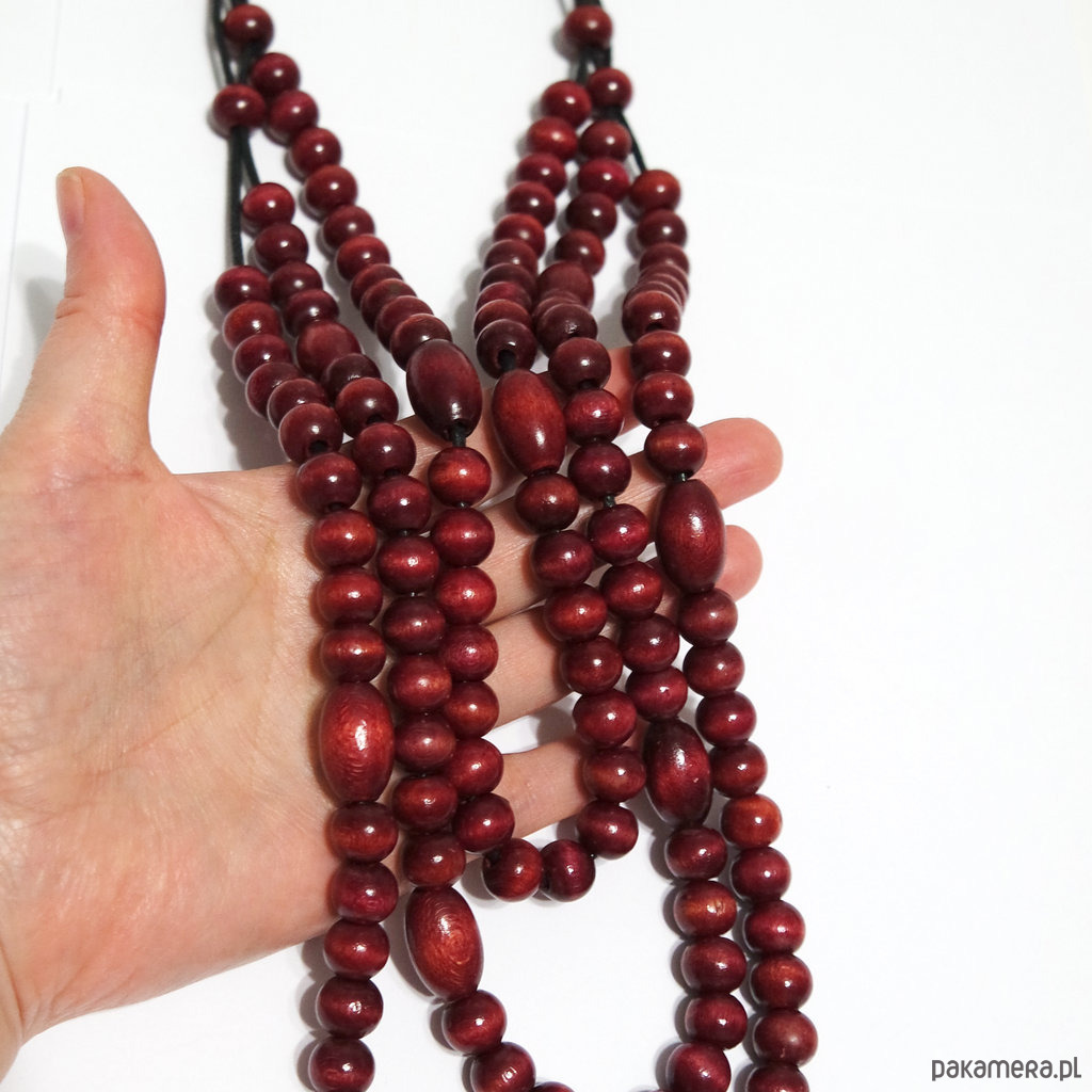 Naszyjnik wykonany z koralików drewnianych nawleczonych na woskowany sznurek.