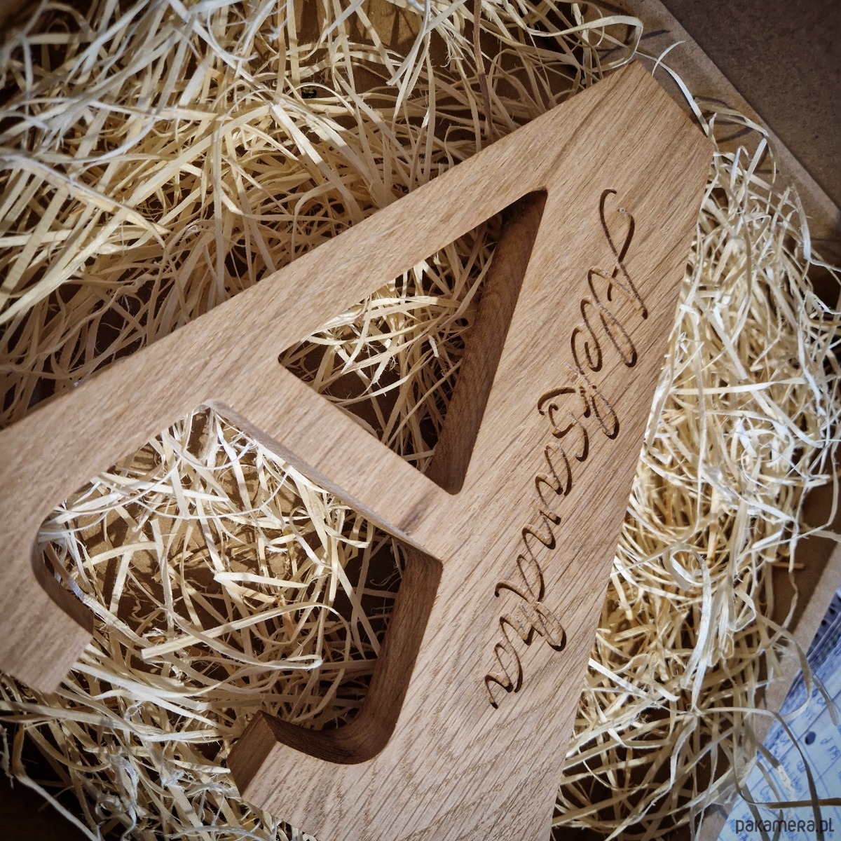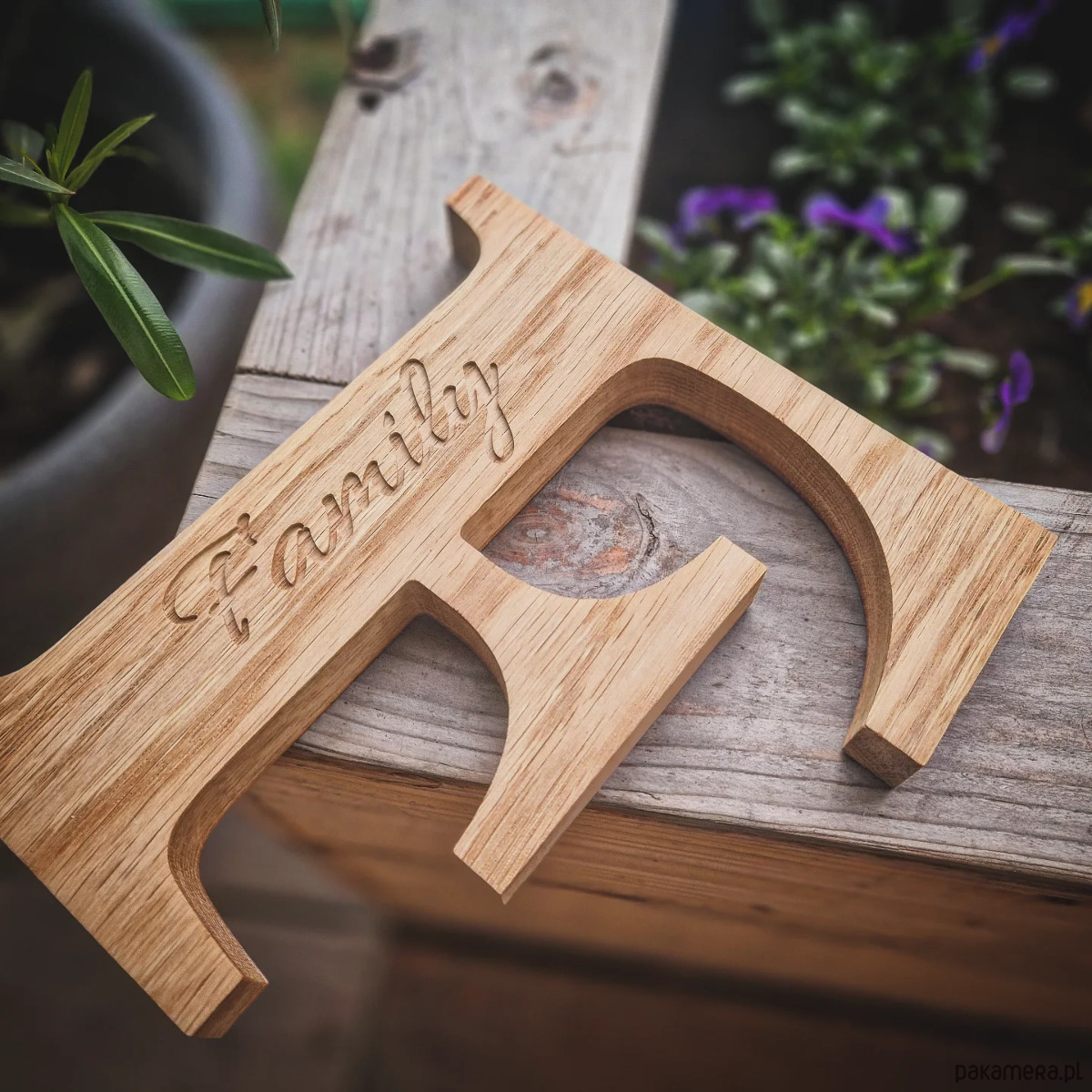 Drewniane litery dekoracyjne z grawerem 25cm DĄB