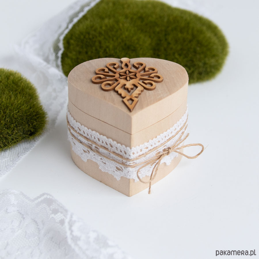 Pudełeczko będzie idealne jako opakowanie na pierścionek zaręczynowy lub pudełko na obrączki na wesele z góralskim akcentem.