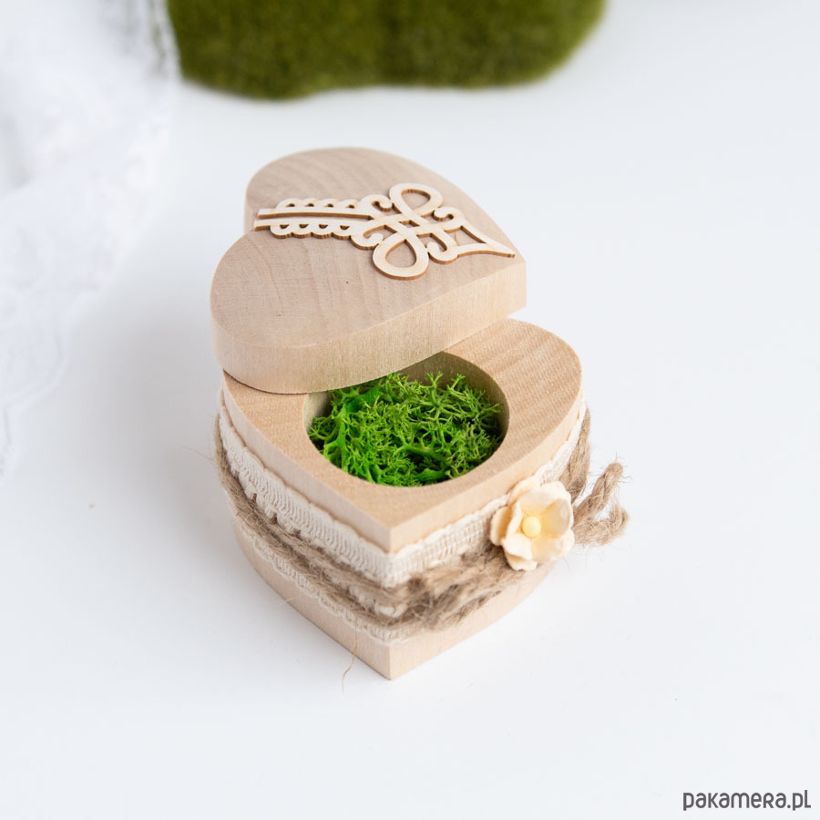 Drewniane pudełeczko na pierścionek zaręczynowy obrączki