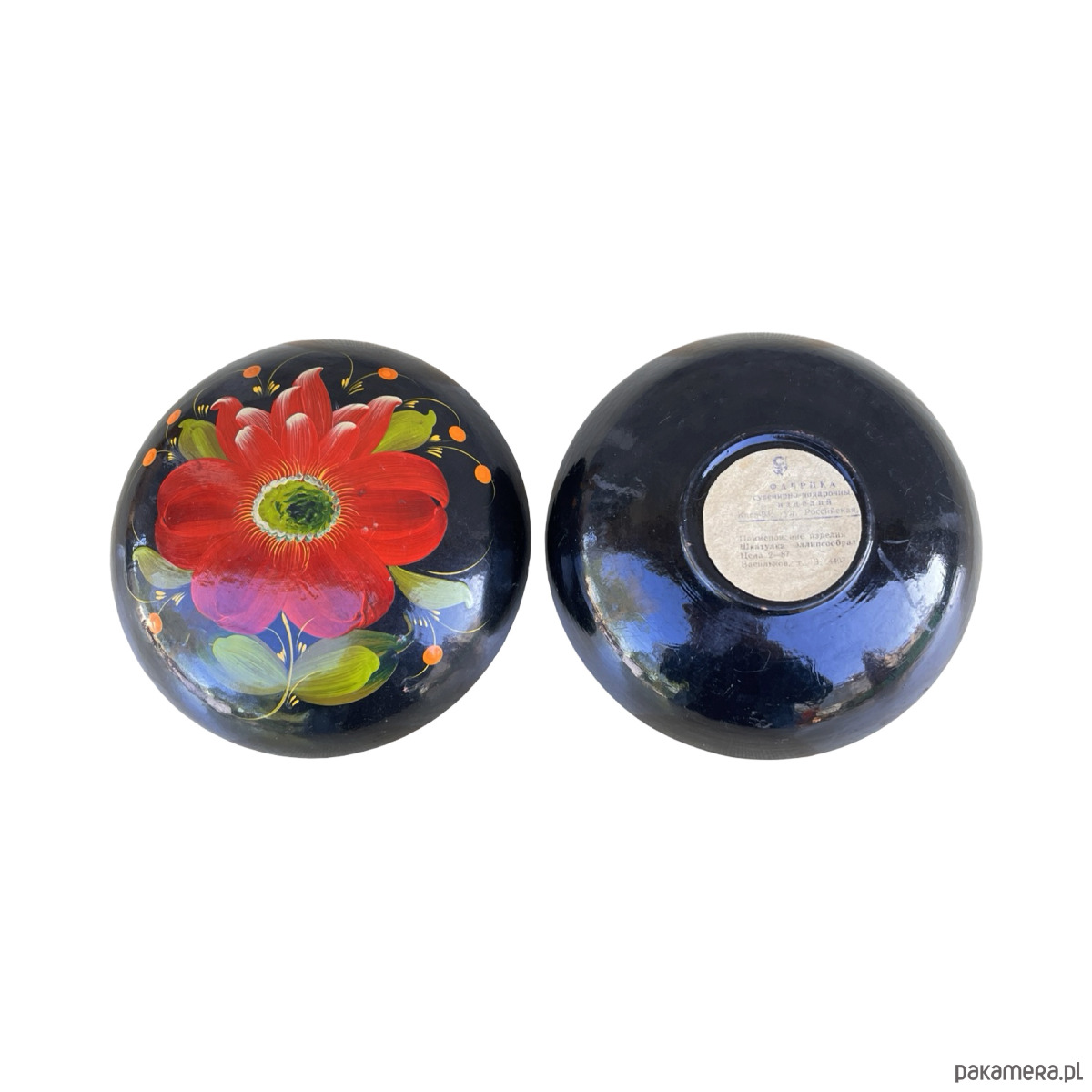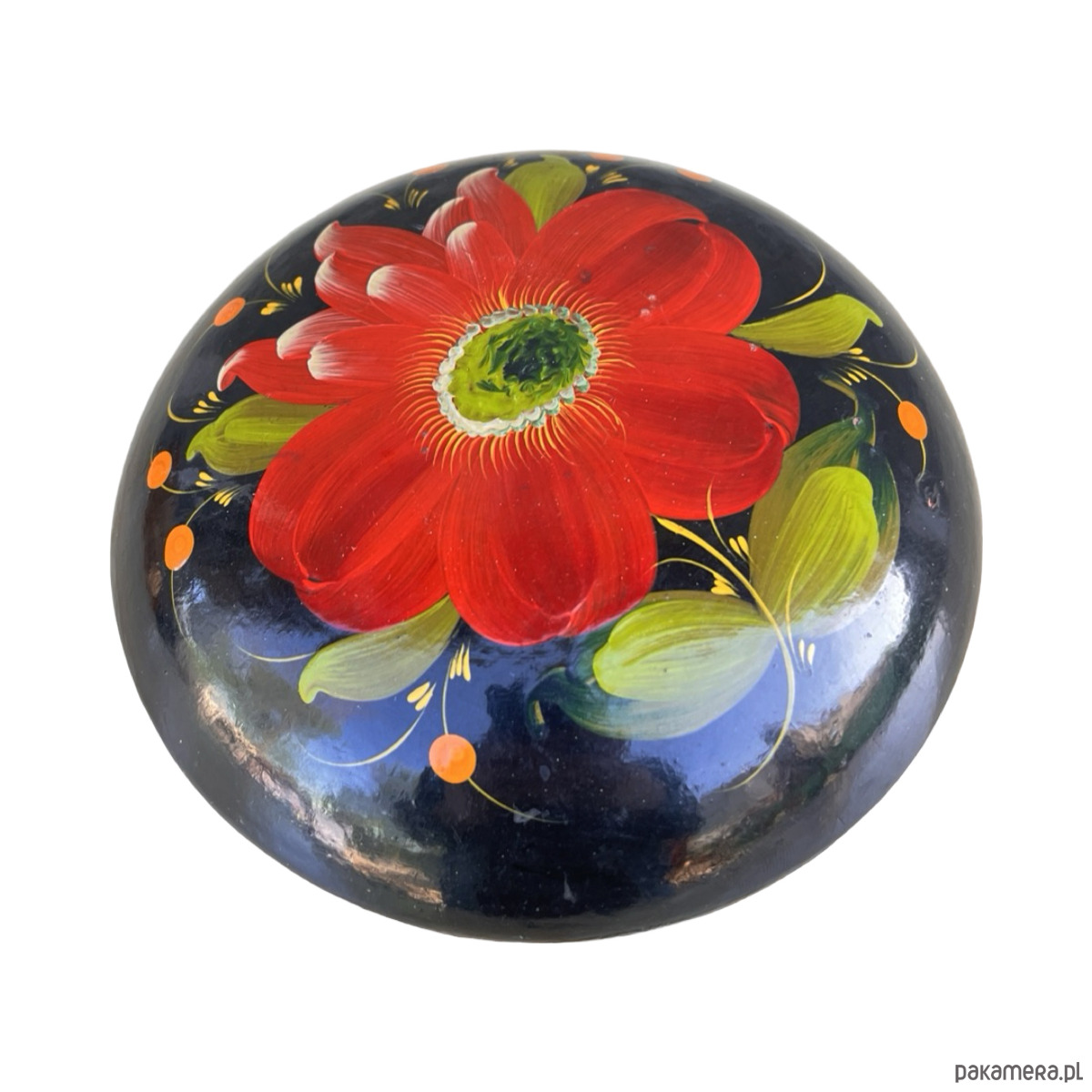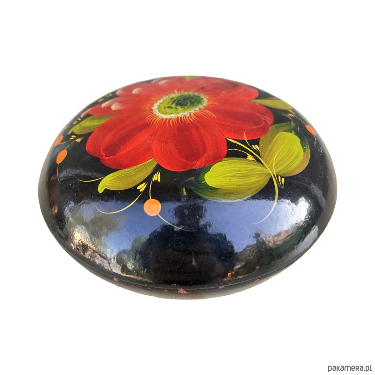 Drewniane, ręcznie malowane pudełko na biżuterię, Ukraina lata 70.