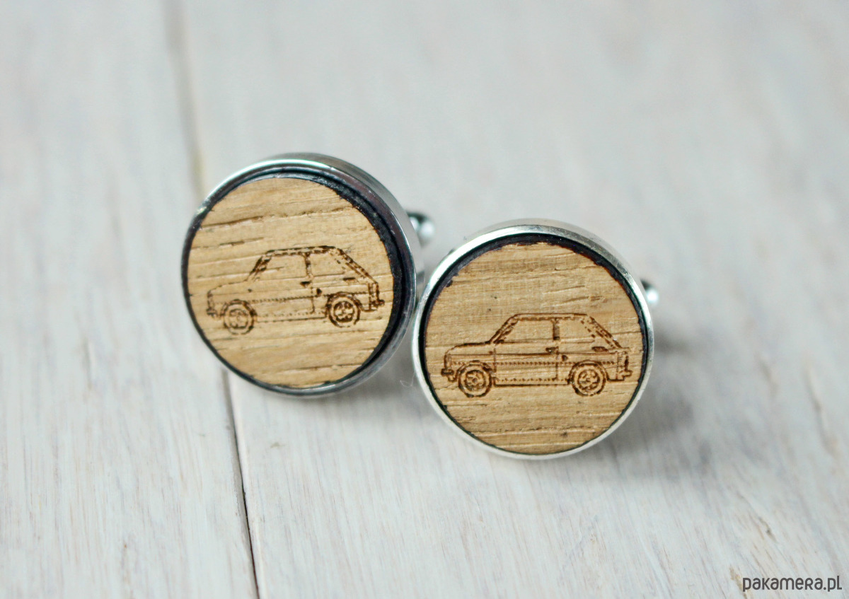 Na spinkach grawer przedstawiający Malucha, Fiata 126p