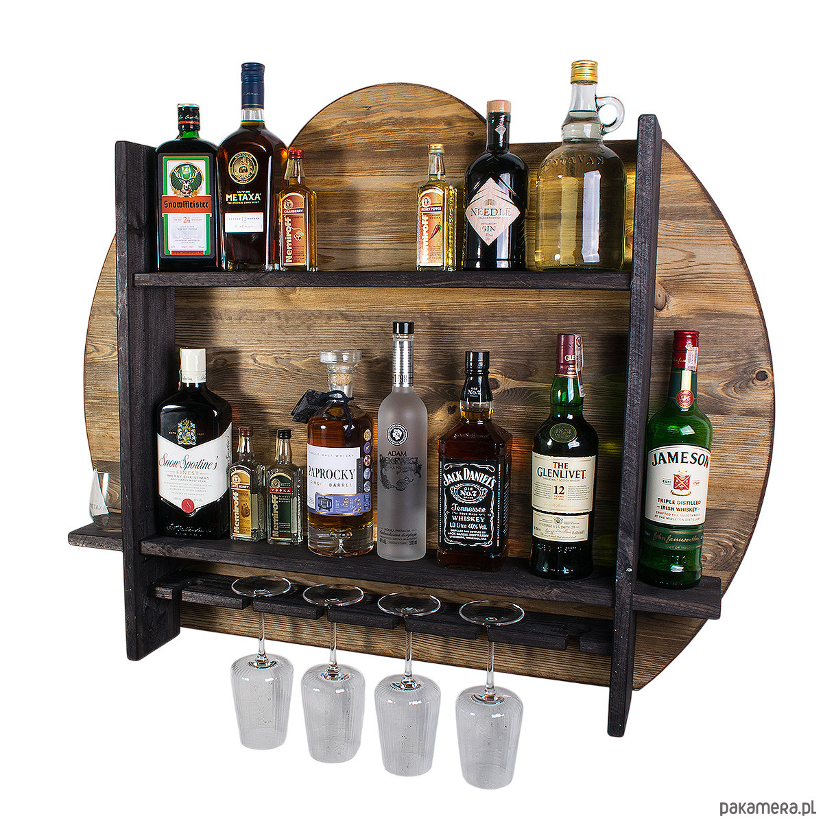 Drewniana półka barowa ścienna John Paddle na alkohol i kieliszki