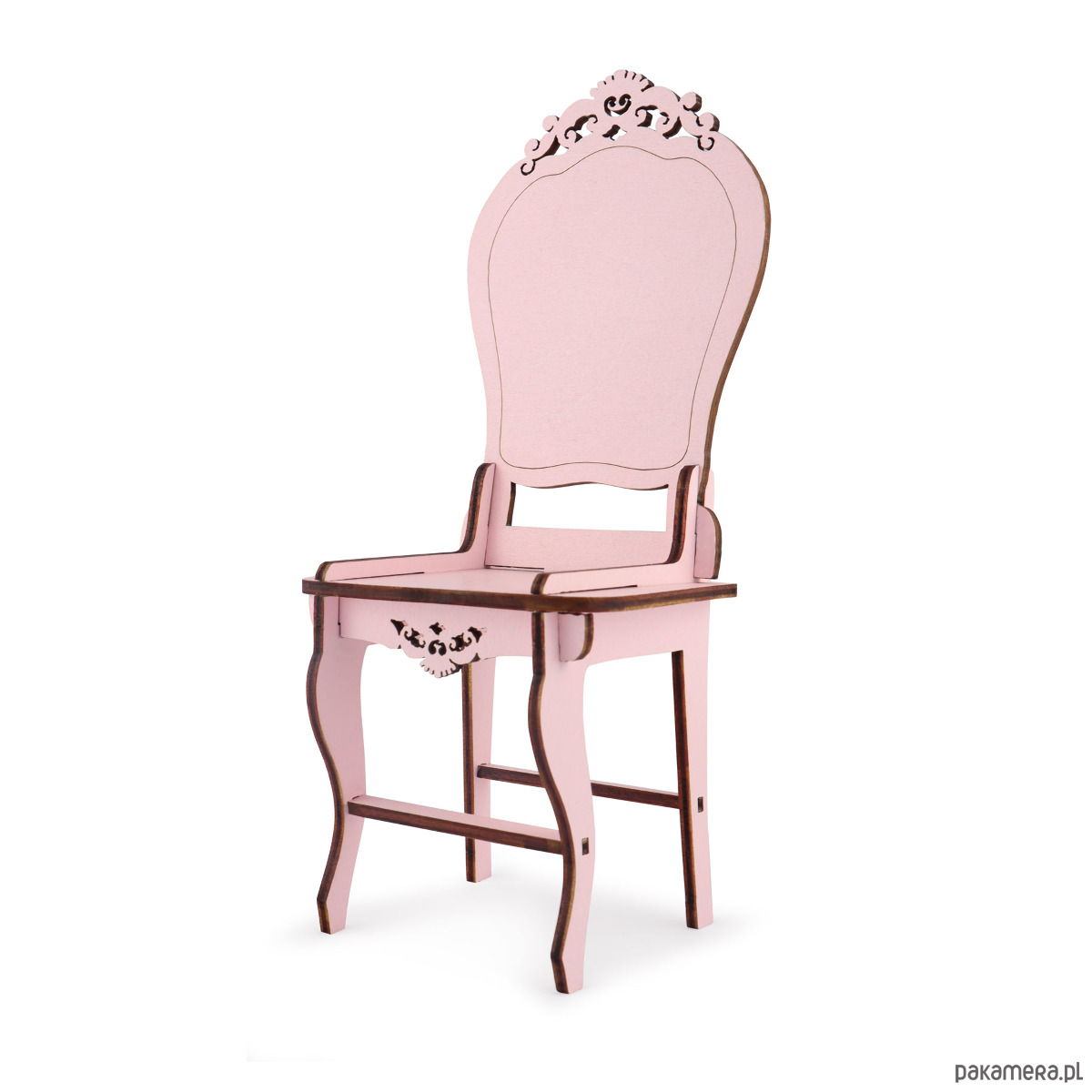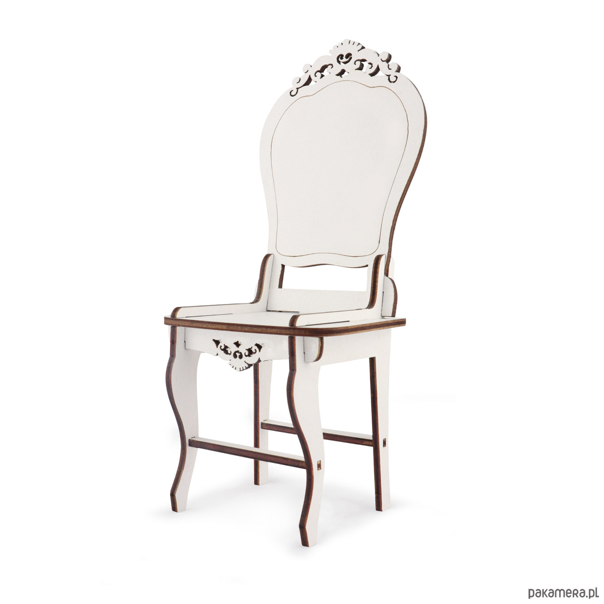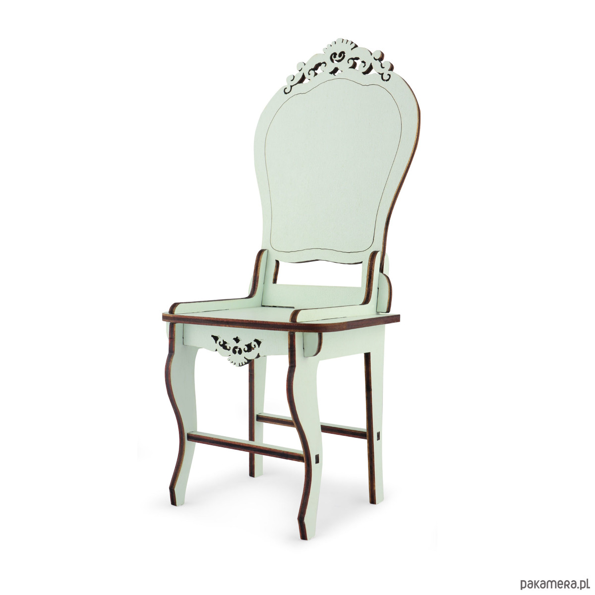 Fotel dla lalek jest podstawowym wyposażeniem salonu domku dla lalek. Wygląd fotela i jego ozdobne wycięcia są wzorowane na stylu ludwikowskim. Przedmiot pasuje do pozostałych mebelków salonowych, np. do stolika kawowego.
