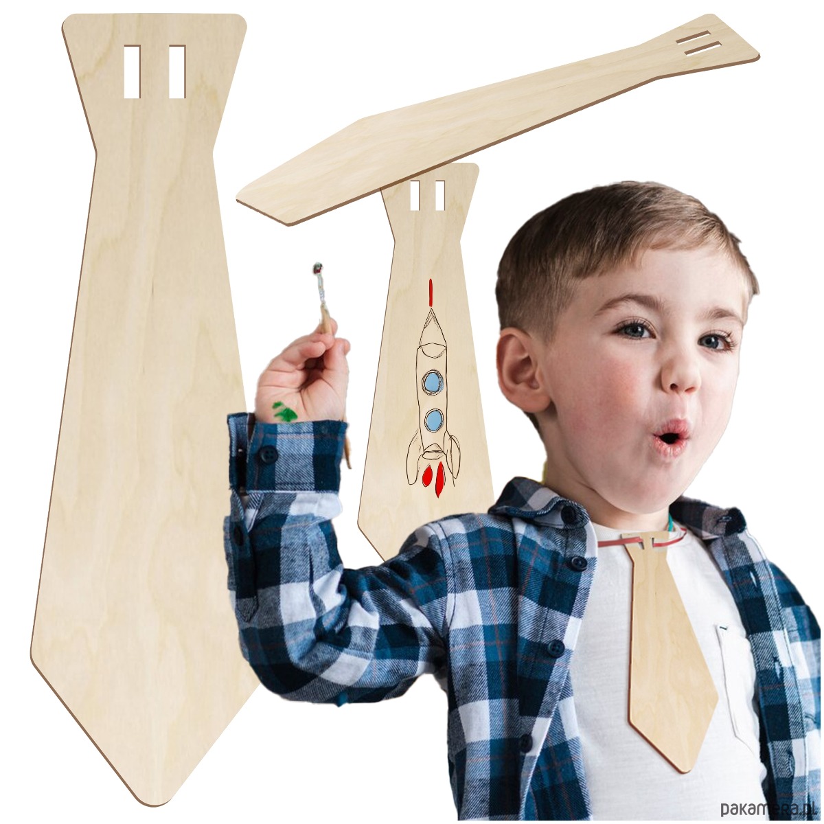 Krawat ze sklejki to unikalny i kreatywny gadżet, który może służyć jako ozdoba, prezent lub forma wyrażenia artystycznej kreatywności. Jest to idealny prezent dla Taty, Dziadka od Przedszkolaka, który indywidualne może ozdobić krawat np. poprzez malowanie, przyklejanie papieru, czy brokatu, rysowanie.
