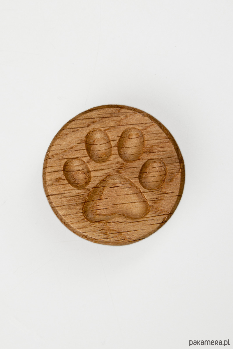 Ten drewniany magnes z grawerowaną łapką psa lub kota to minimalistyczny, a jednocześnie ciepły dodatek do wnętrza. Pięknie prezentuje się na lodówce, tablicy magnetycznej lub w biurze.