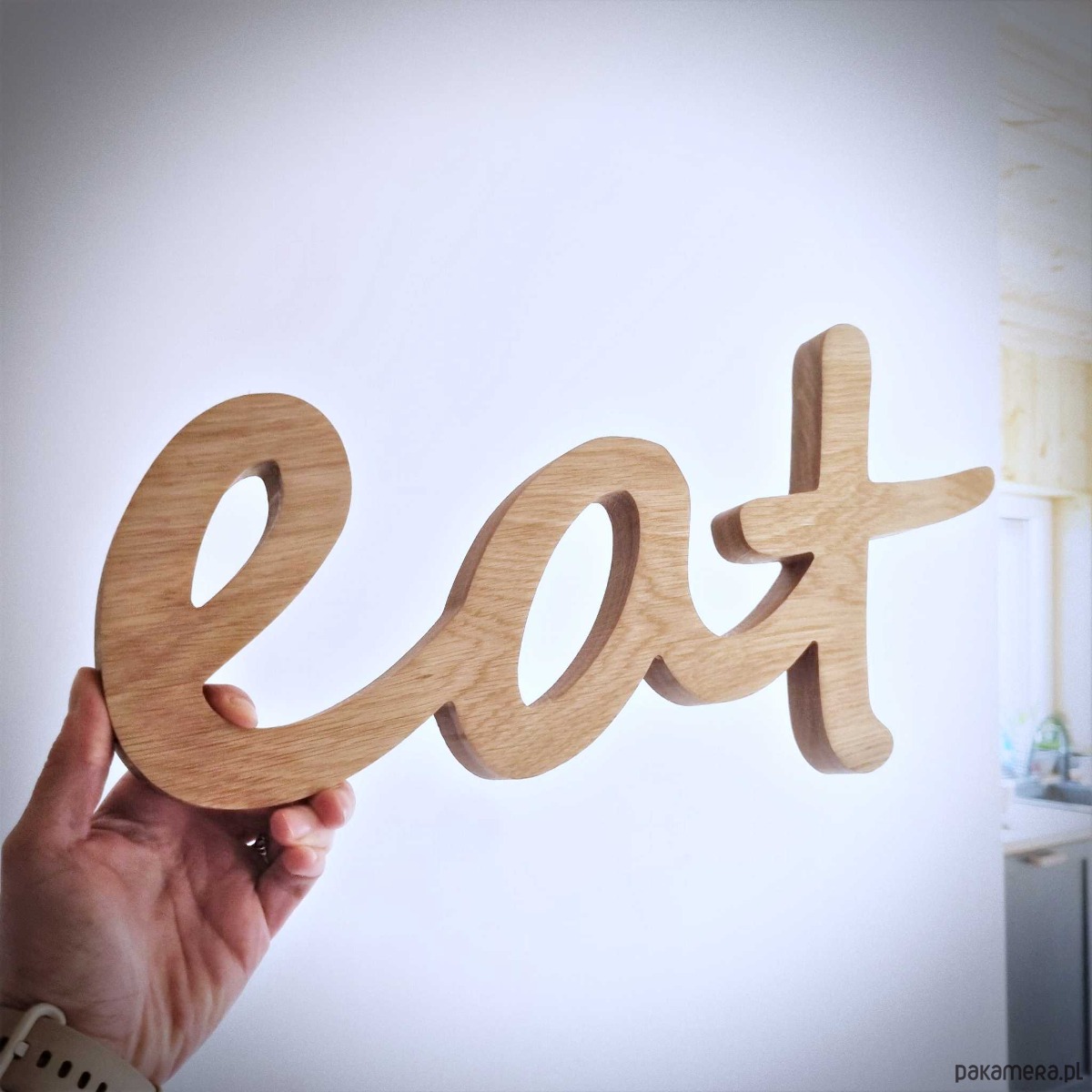 Napis "eat" - może dość nietypowa, jednak z całą pewnością oryginalna dekoracja do Twojego wnętrza. Pewnie się domyślasz, ale najlepiej odnajdzie się w kuchni bądź jadalni. Z całą pewnością jest to także dobra propozycja do rozważenia, jeśli szukasz oryginalnego prezentu dla kogoś z bliskich Ci osób!