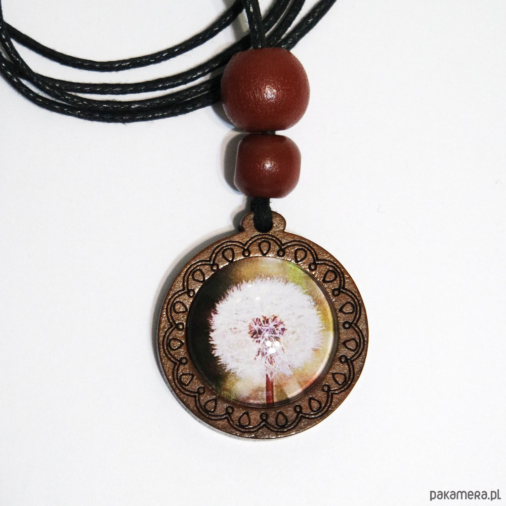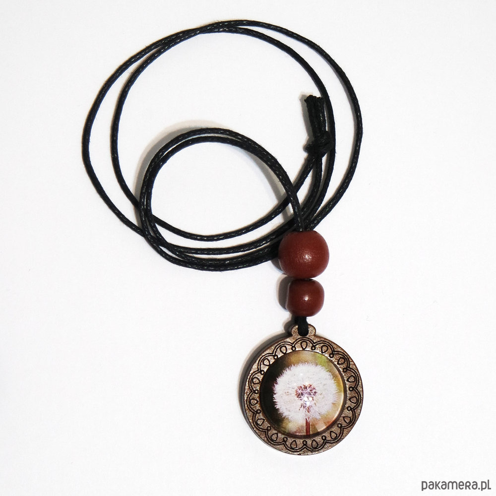 Medalion zawieszony na woskowym sznureczku, długość sznureczka ok. 80 cm.