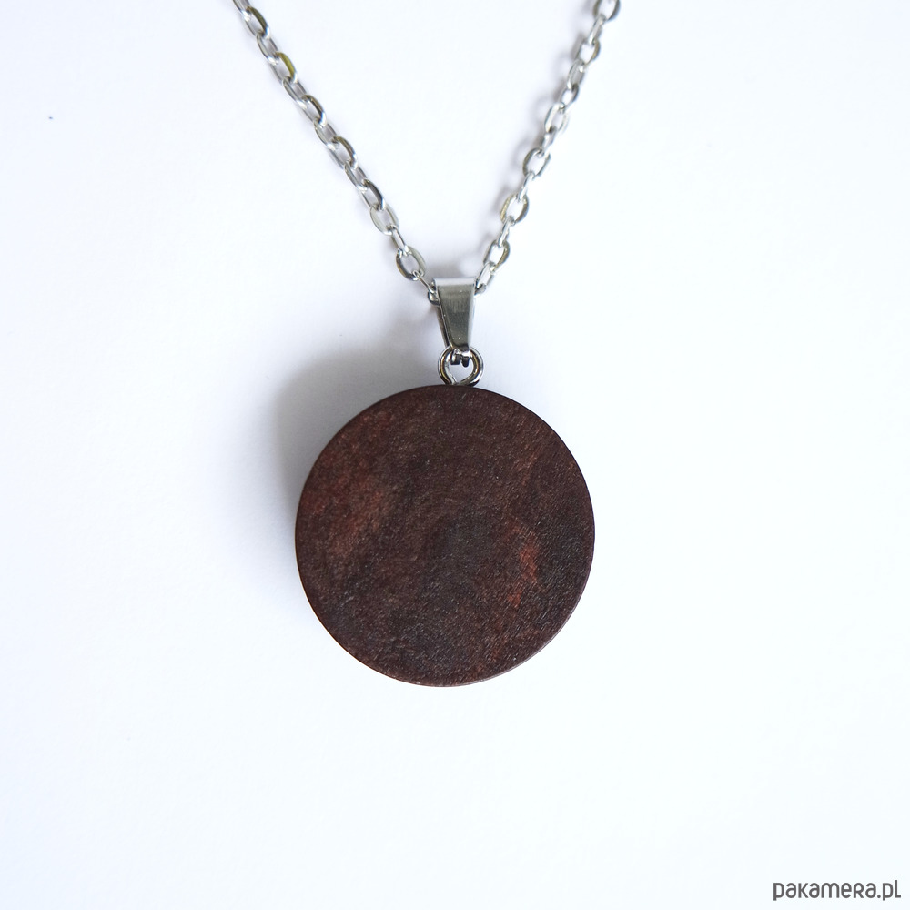 Drewniany naszyjnik z naszą autorską grafiką.
