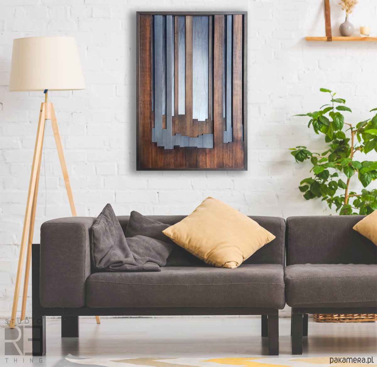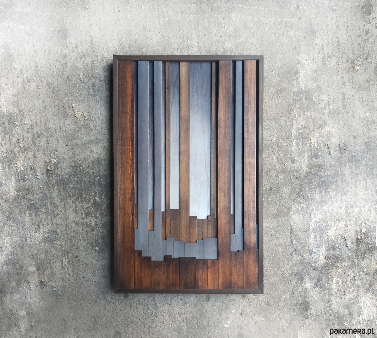 Ten drewniany obraz inspirowany naturą i leśnymi wędrówkami jest oryginalną dekoracją do każdej przestrzeni. Widoczne słoje, struktura drewna i różnorodność odcieni brązu i zimnych szarości to prawdziwa wizualna uczta. Dzięki nakładającym się na siebie planom kompozycja ta staje się przestrzenna i wciągająca. Przenosi prosto na łono natury, do lasu, na wędrówkę w nieznane.