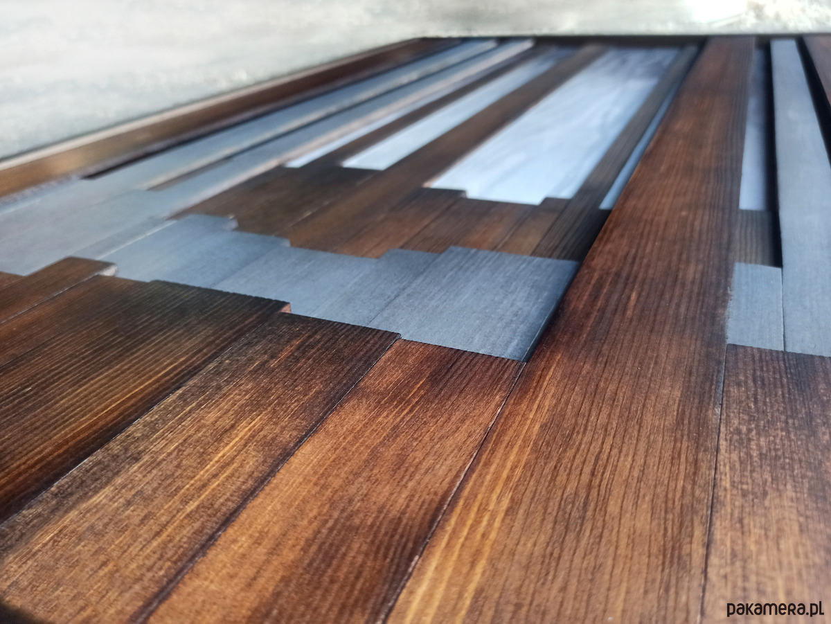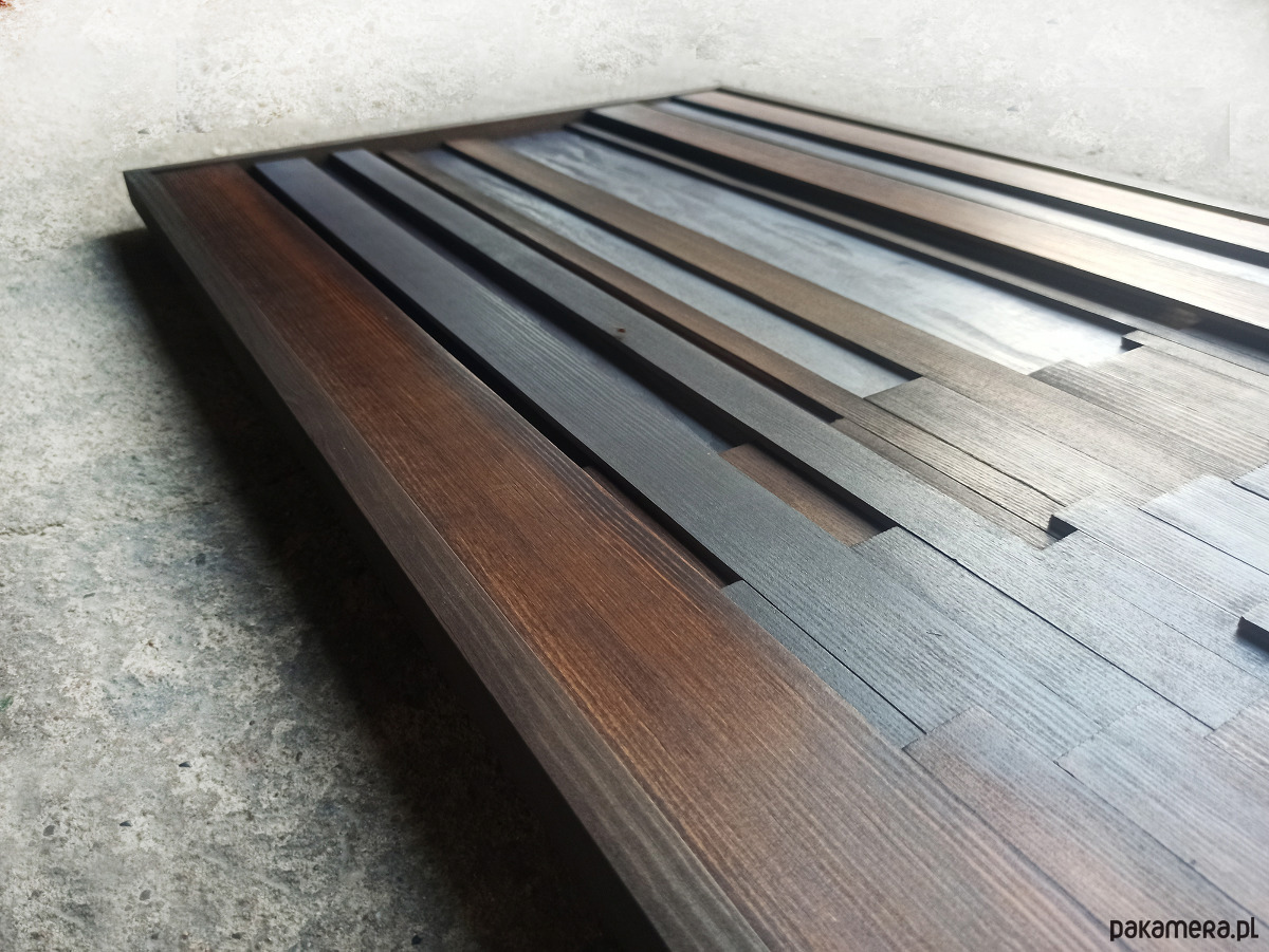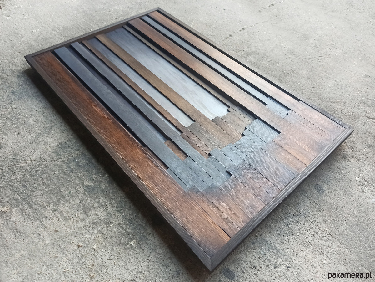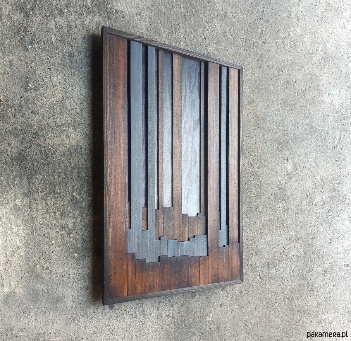 Obraz został w całości wykonany ręcznie w naszej pracowni, z pełną dbałością o estetyką i jakość wykonania. Wszystkie drewniane elementy przed przyklejeniem do ręcznie malowanego tła zostały wcześniej odpowiednio przygotowane: docięte, wyszlifowane i zabarwione. Obraz został wykończony wysokiej jakości olejem podkreślającym naturalną strukturę drewna.