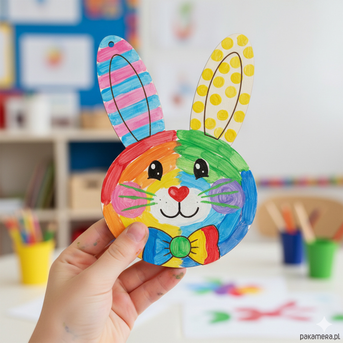 ⭐ Dzięki precyzyjnie wyciętej dziurce, zajączek może stać się dekoracją okna, drzwi lub stroika.