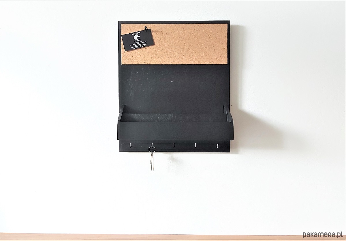 Dwie przegródki, tablica korkowa, pięć haczyków na klucze - czyli wszystko czego potrzebujesz.