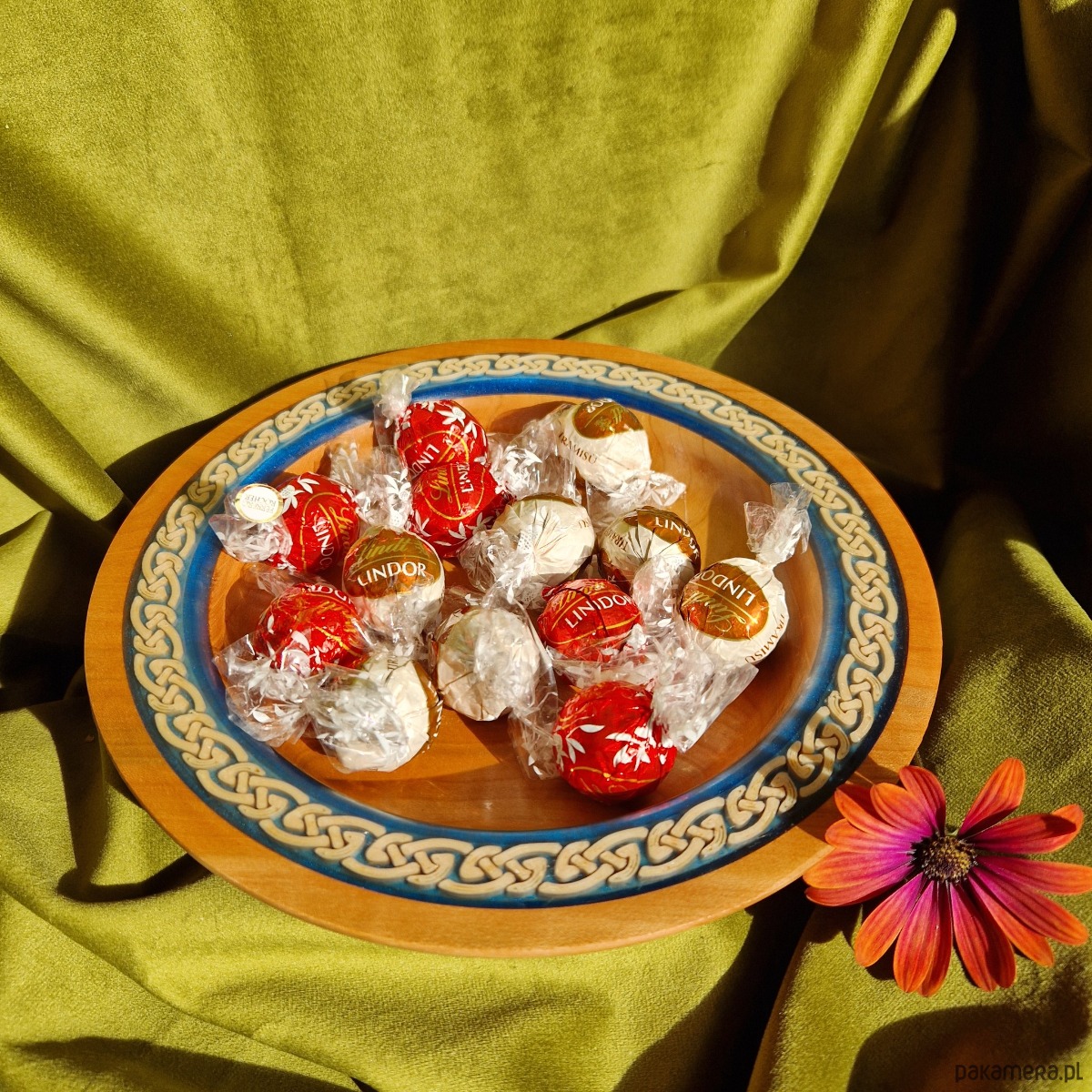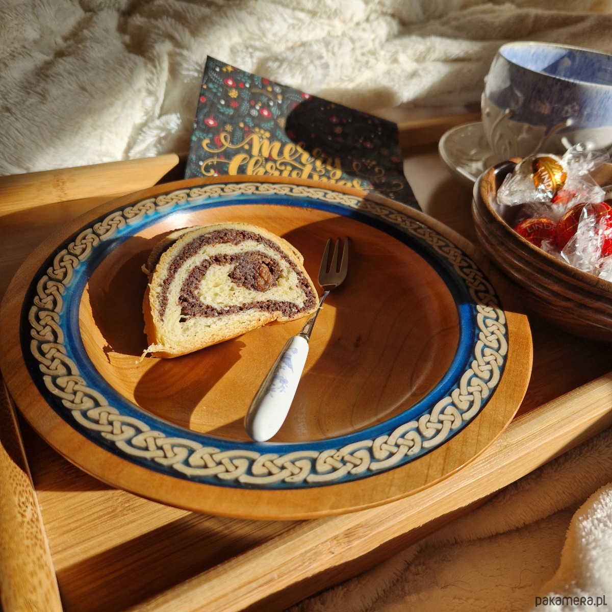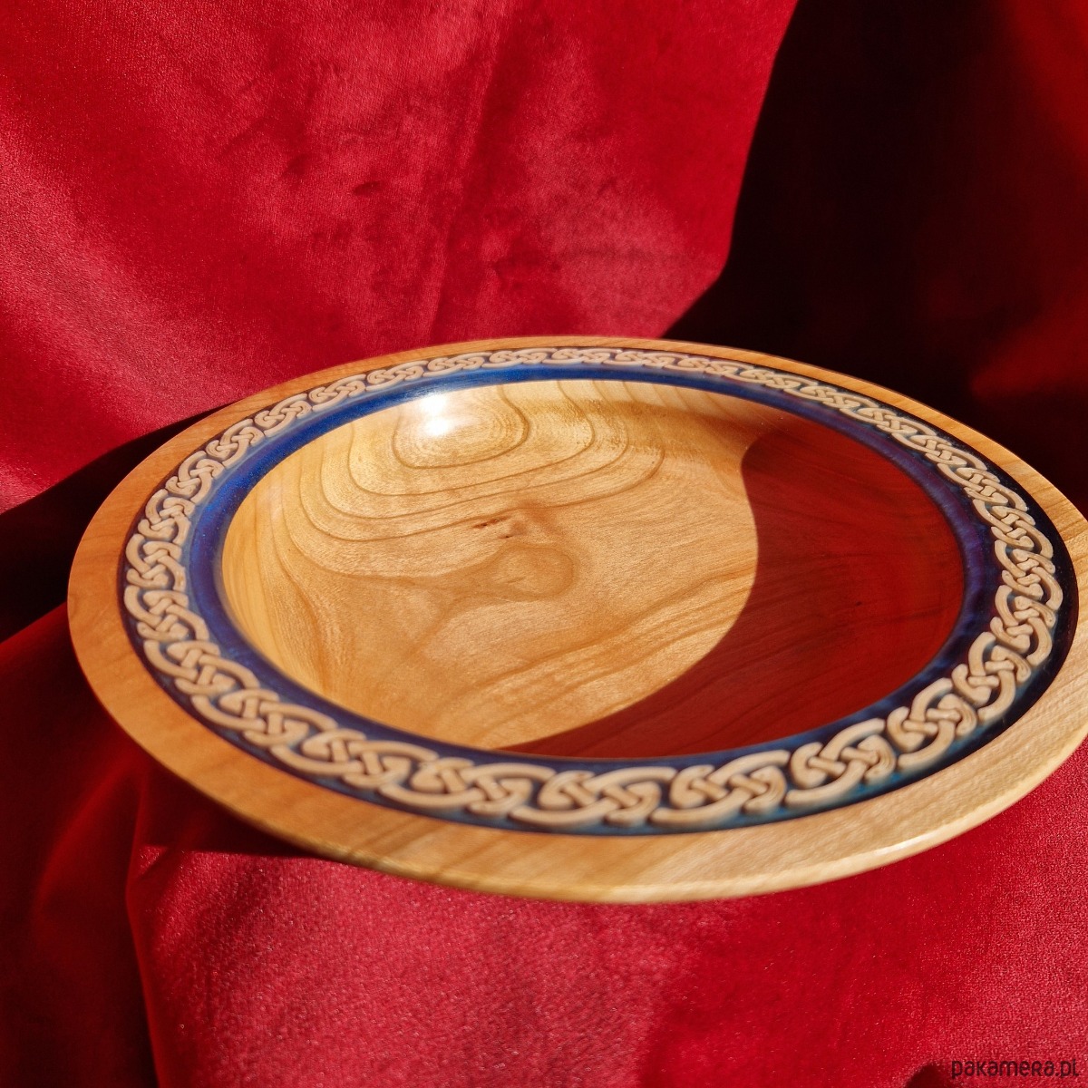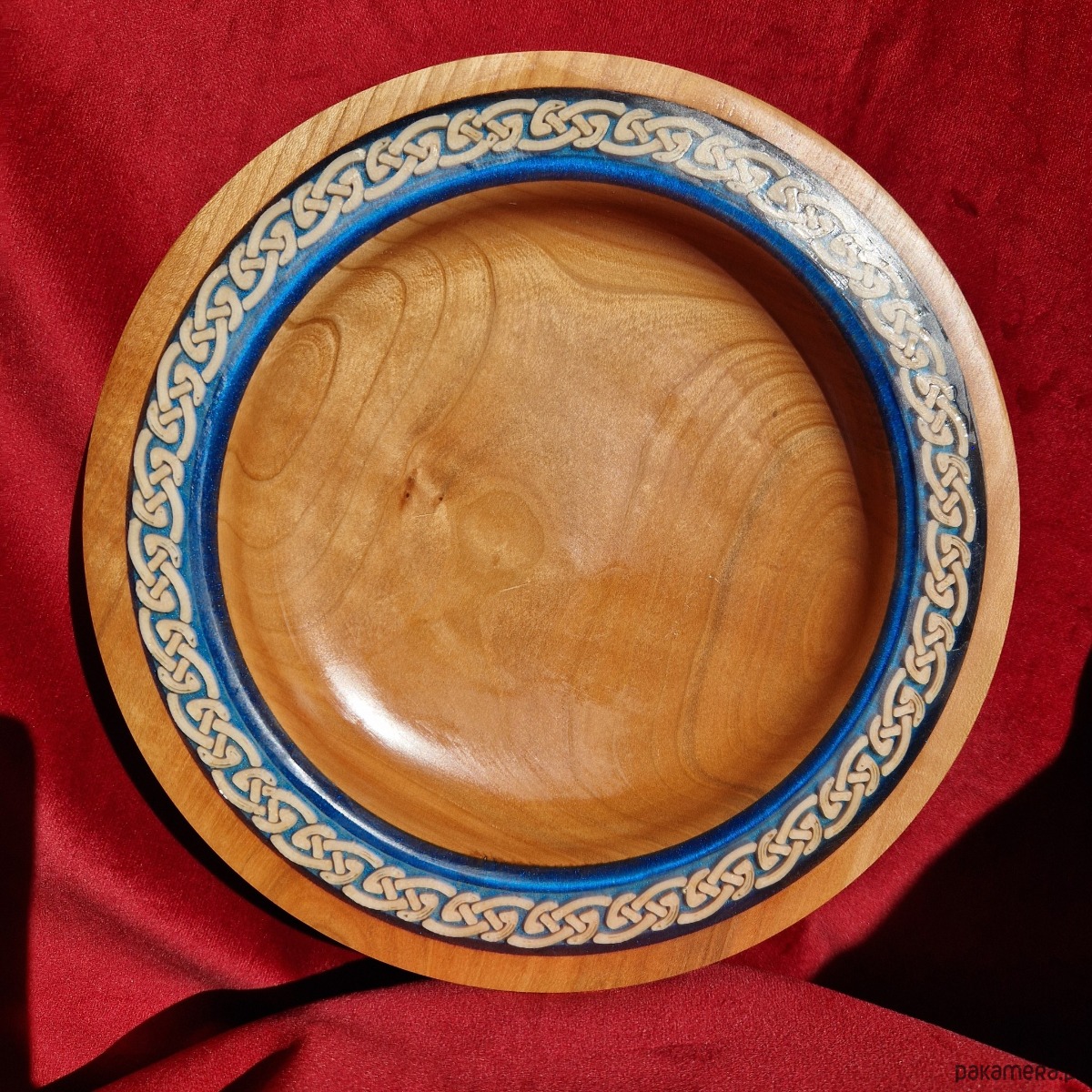 Drewniany ręcznie toczony talerz z motywem celtyckim