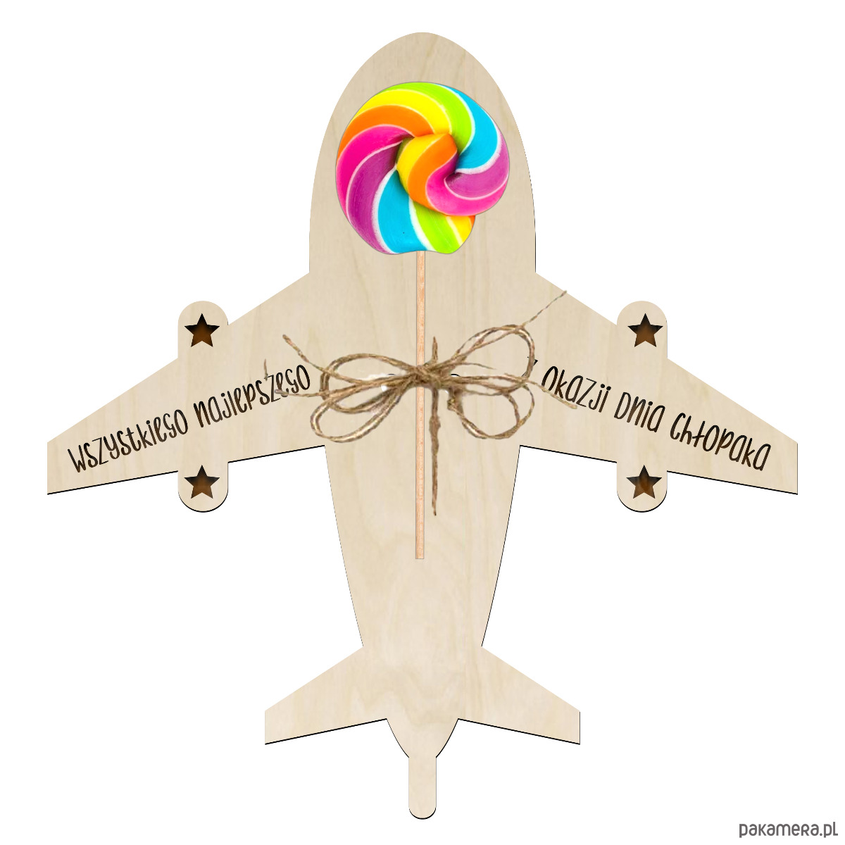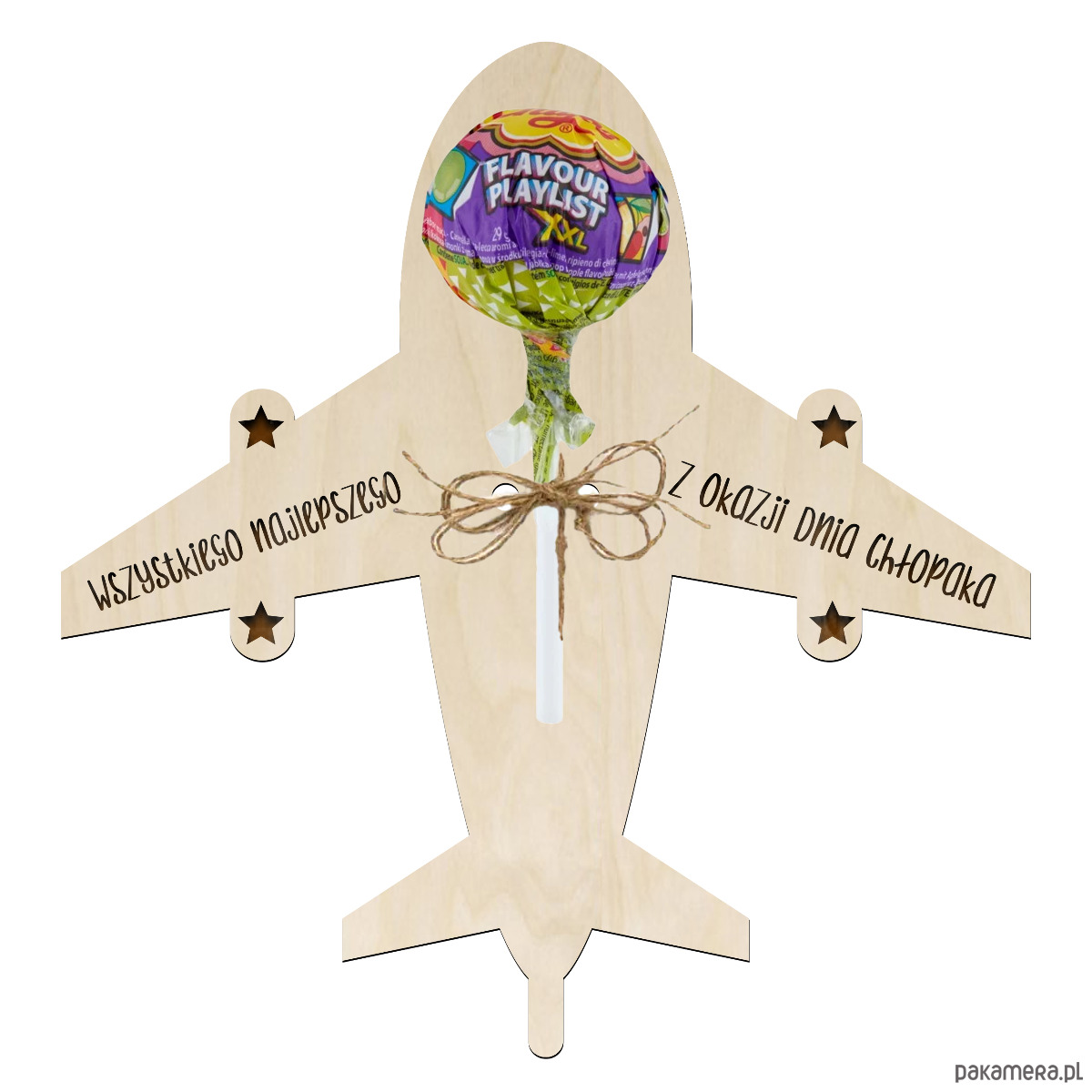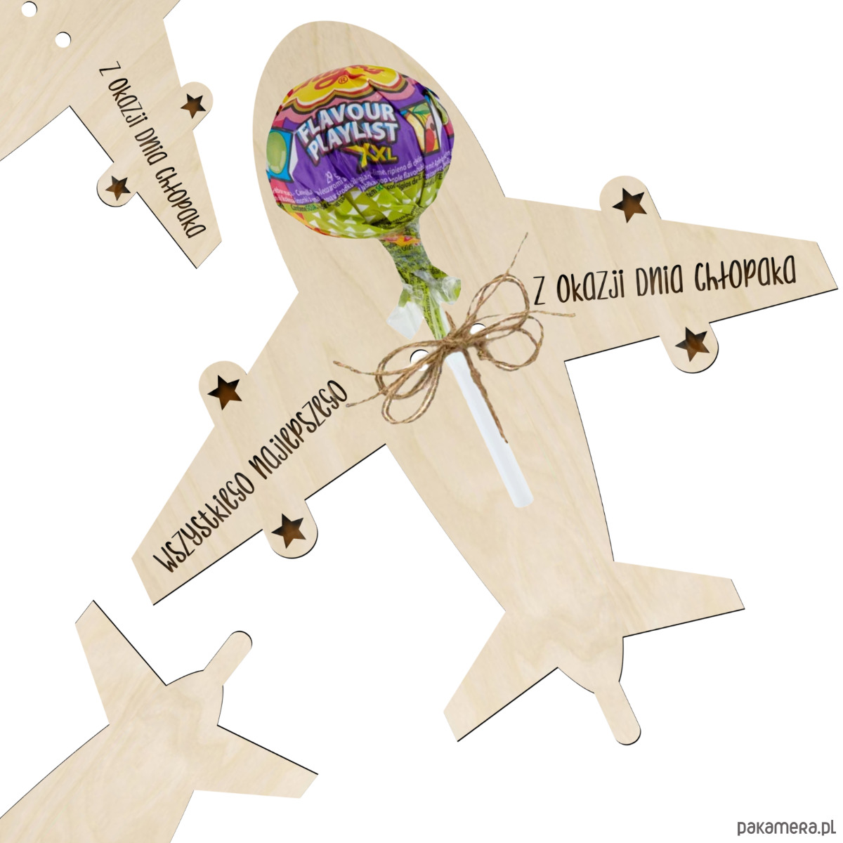 Drewniany Samolot na Lizaka Upominek Prezent na Dzień Chłopaka Mężczyzny