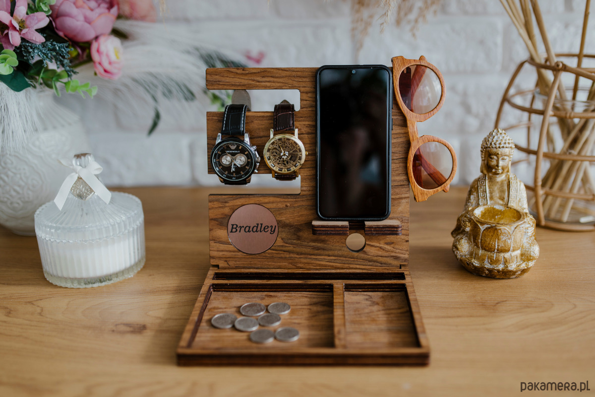 Ekspozytor na zegarki wykonany z wysokiej jakości drewna brzozowego. . Głównie służy do zawieszania zegarków, bransoletek i innej biżuterii. Bardzo przydatny w codziennym użytkowaniu dla każdego. Idealny prezent dla ukochanej osoby. Stylem pasujący do każdego wnętrza. Inny kolor po uzgodnieniu ze sprzedawcą. Na zamówienie. Kolor stojaka - ciemny brąz .