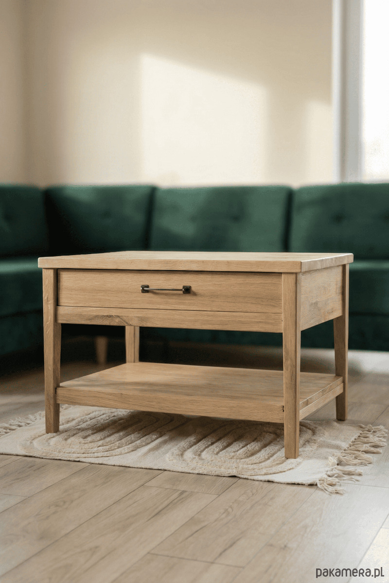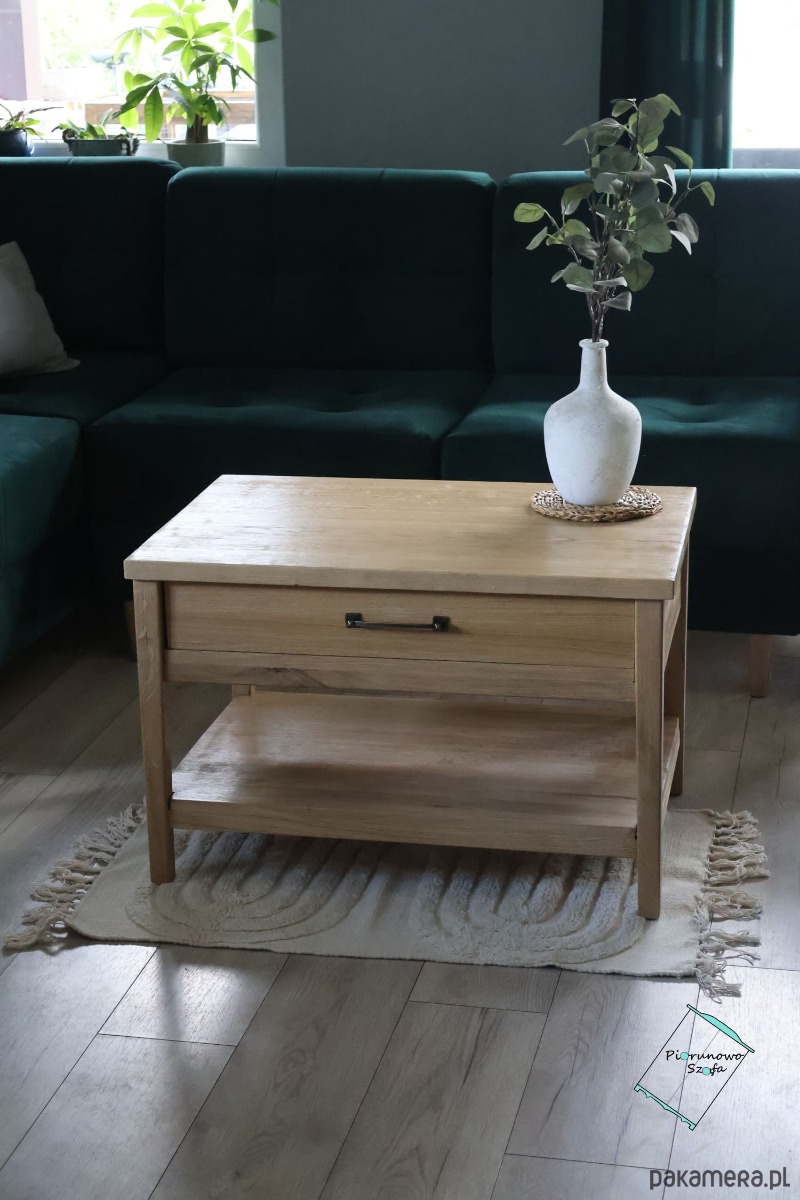 Dodaj ciepła i funkcjonalności swojemu salonowi dzięki temu eleganckiemu stolikowi kawowemu wykonanemu z naturalnego drewna. Idealny do wnętrz w stylu rustykalnym, boho, skandynawskim czy nowoczesnym.