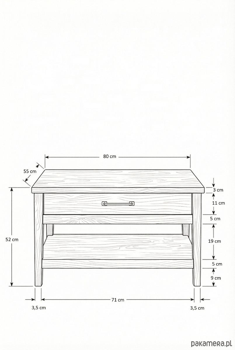 Wymiary: szerokość ok. 80 cm × głębokość 55 cm × wysokość 52 cm