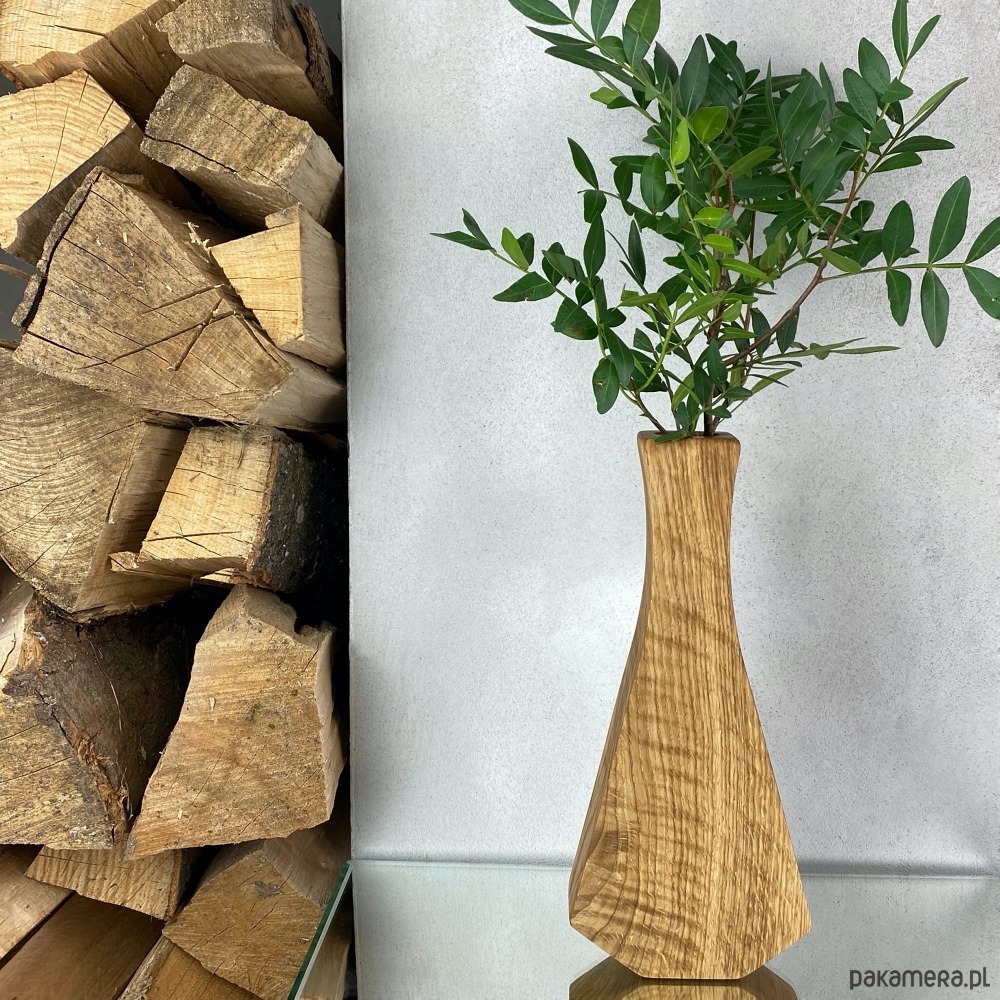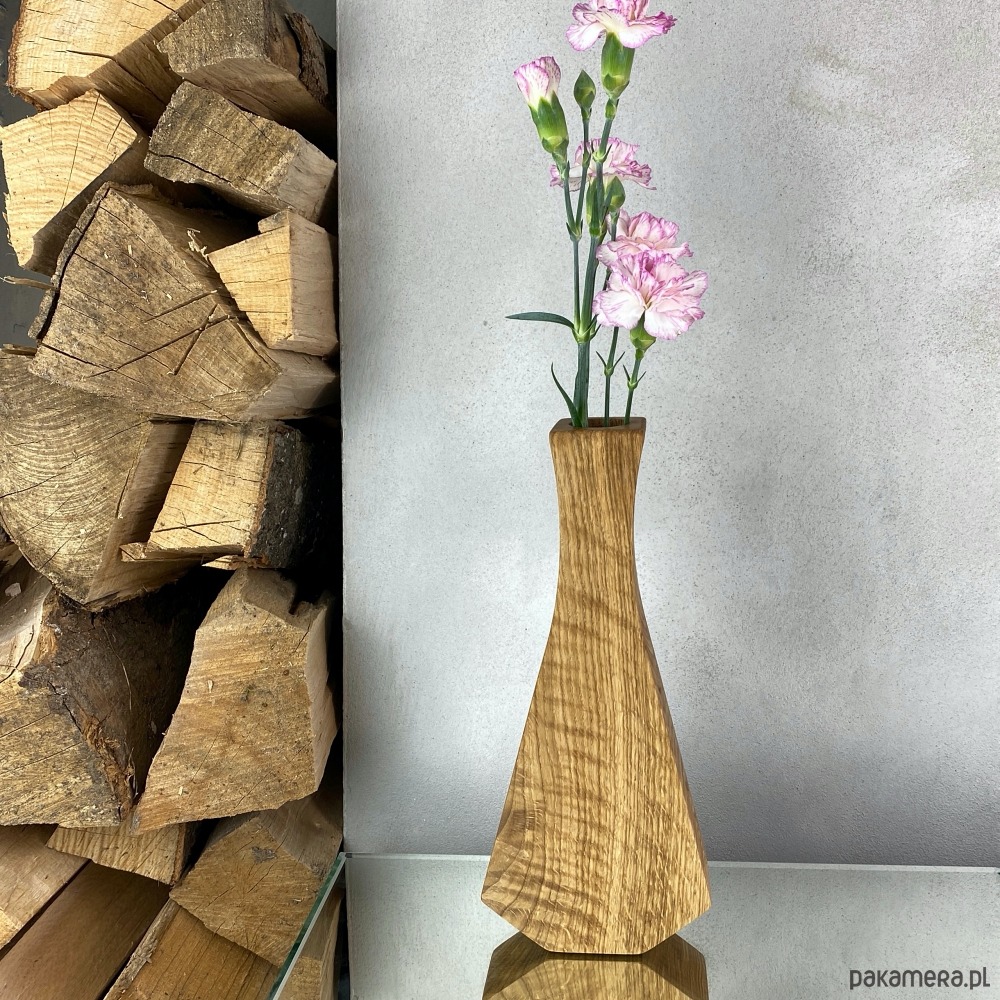 Drewniany wazon z dębu na suszone i świeże kwiaty