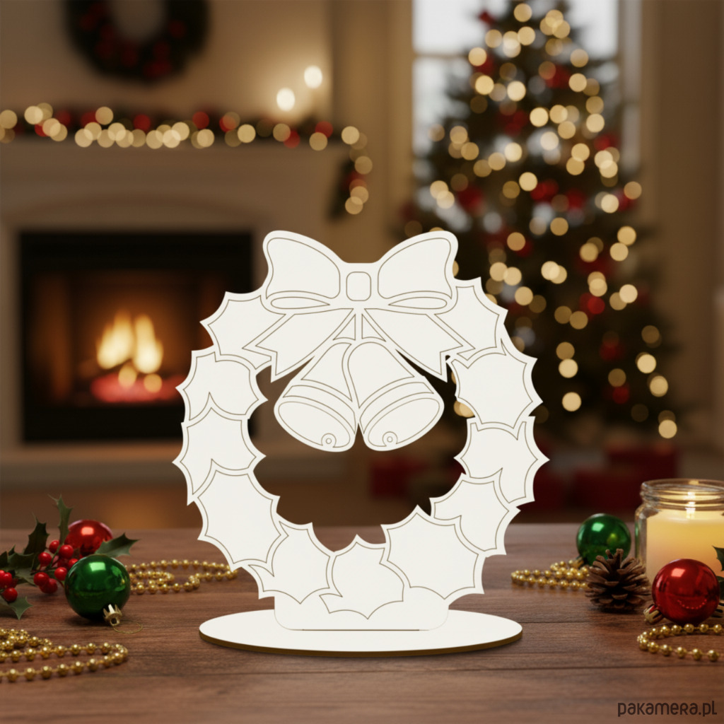 Drewniany Wieniec Wianek Stojący na Podstawce Figurka na Święta Prezent DIY