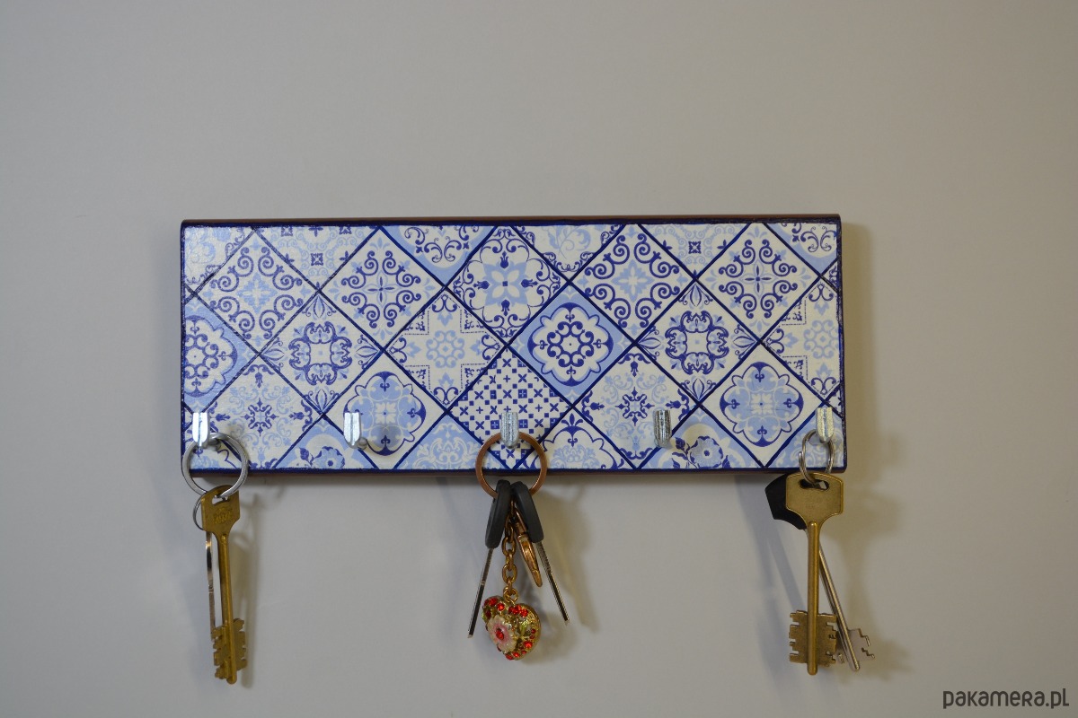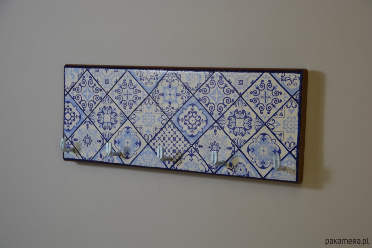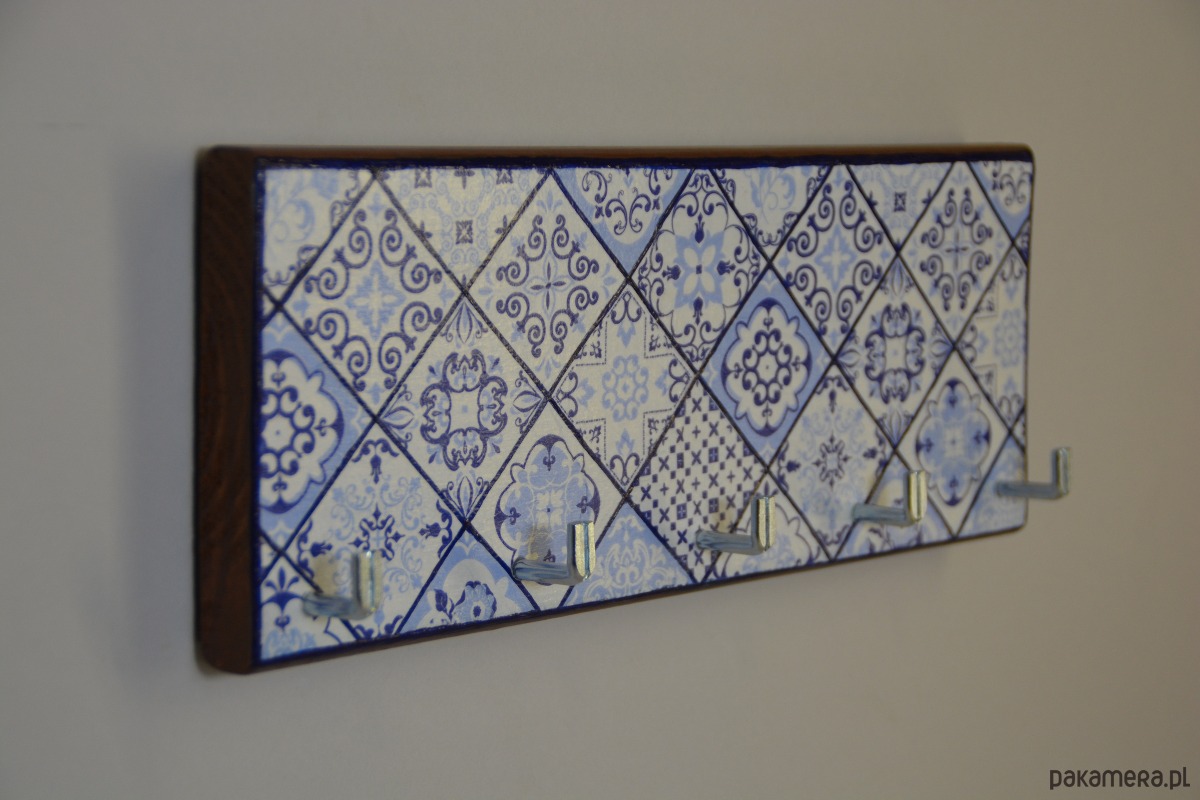 Drewniany wieszak na klucze w stylu azulejo
