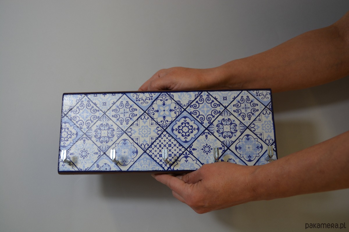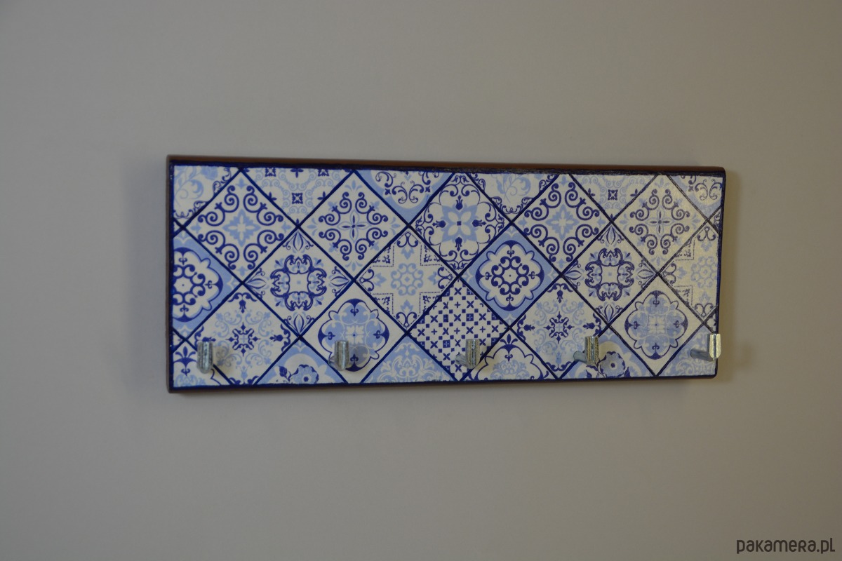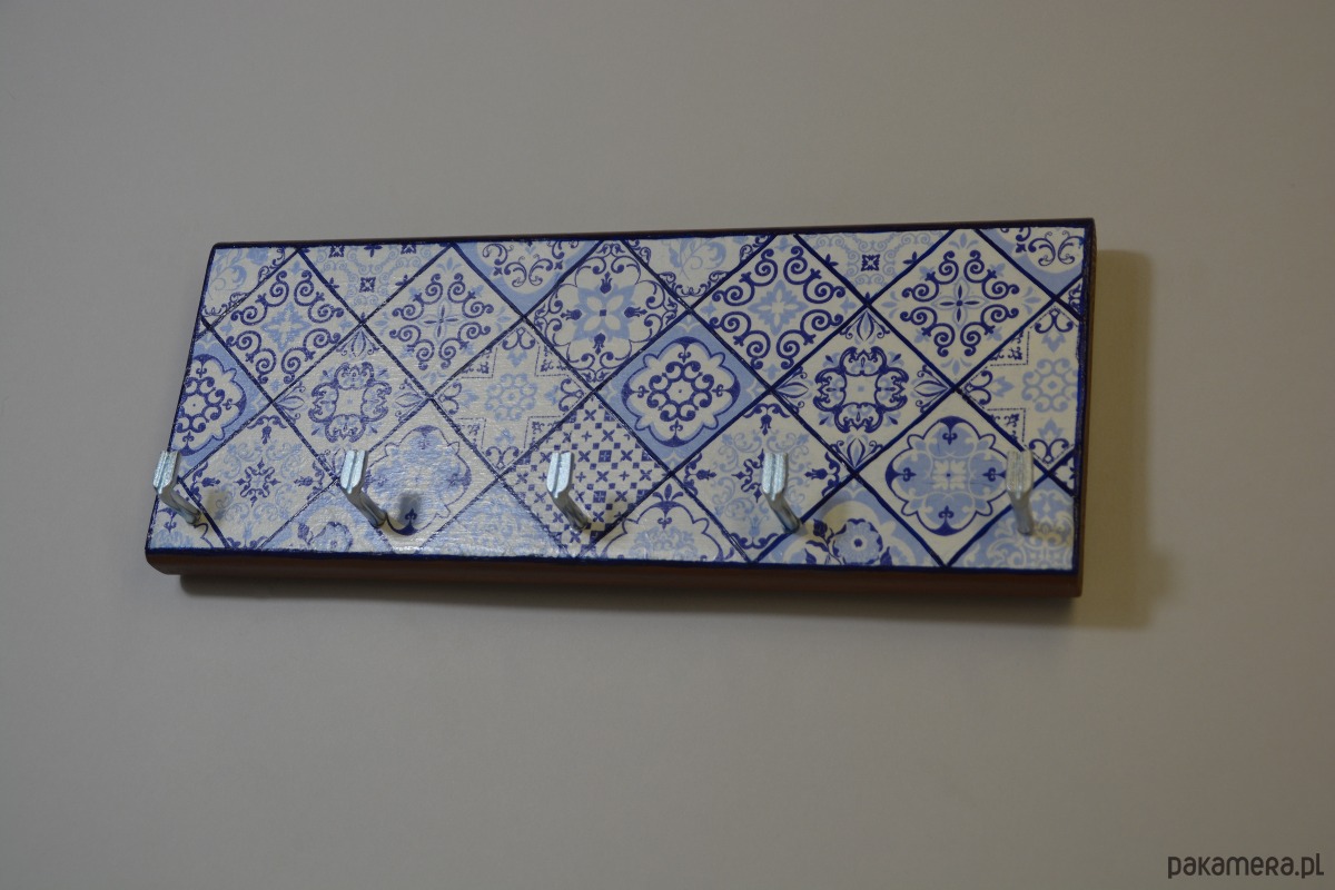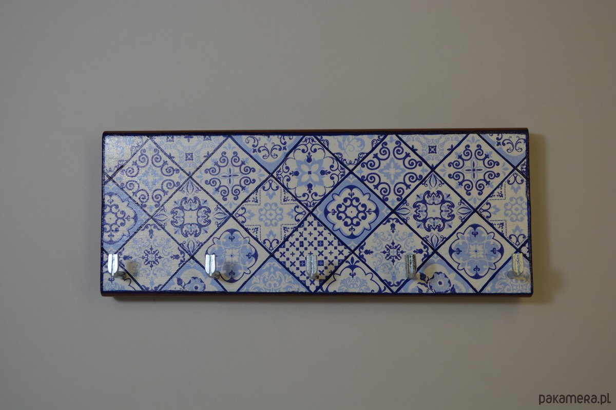 Drewniany wieszak na klucze w stylu azulejo