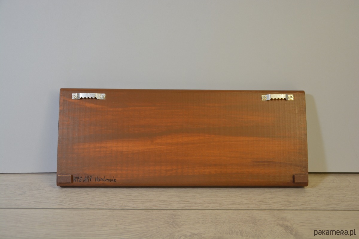 Każdy egzemplarz jest wykonany ręcznie, dzięki czemu jest unikatowy. Drewniana baza jest trwała, lekka i gotowa do zawieszenia.