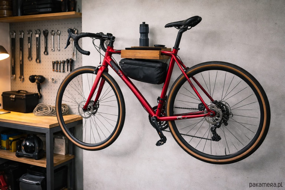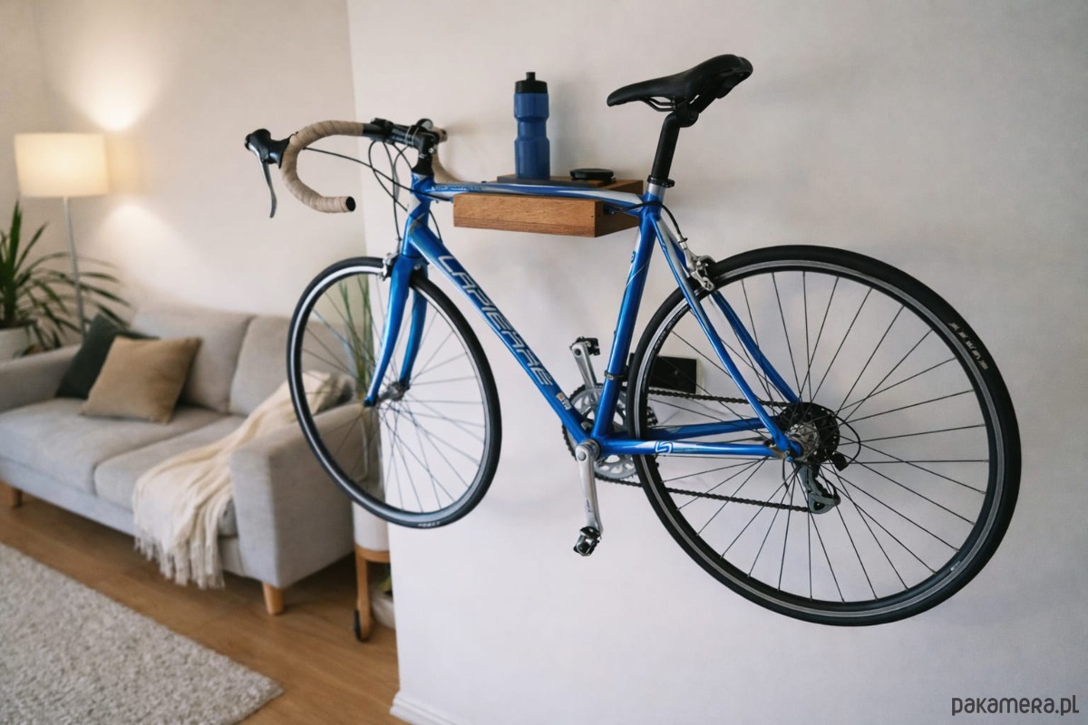 Drewniany Wieszak na Rower z Funkcją Półki na Kwiaty