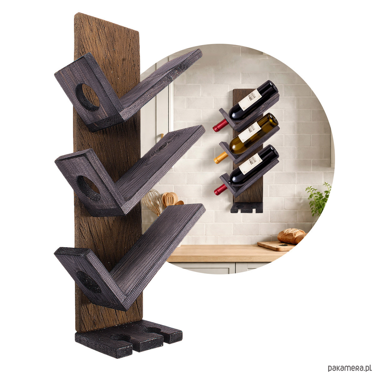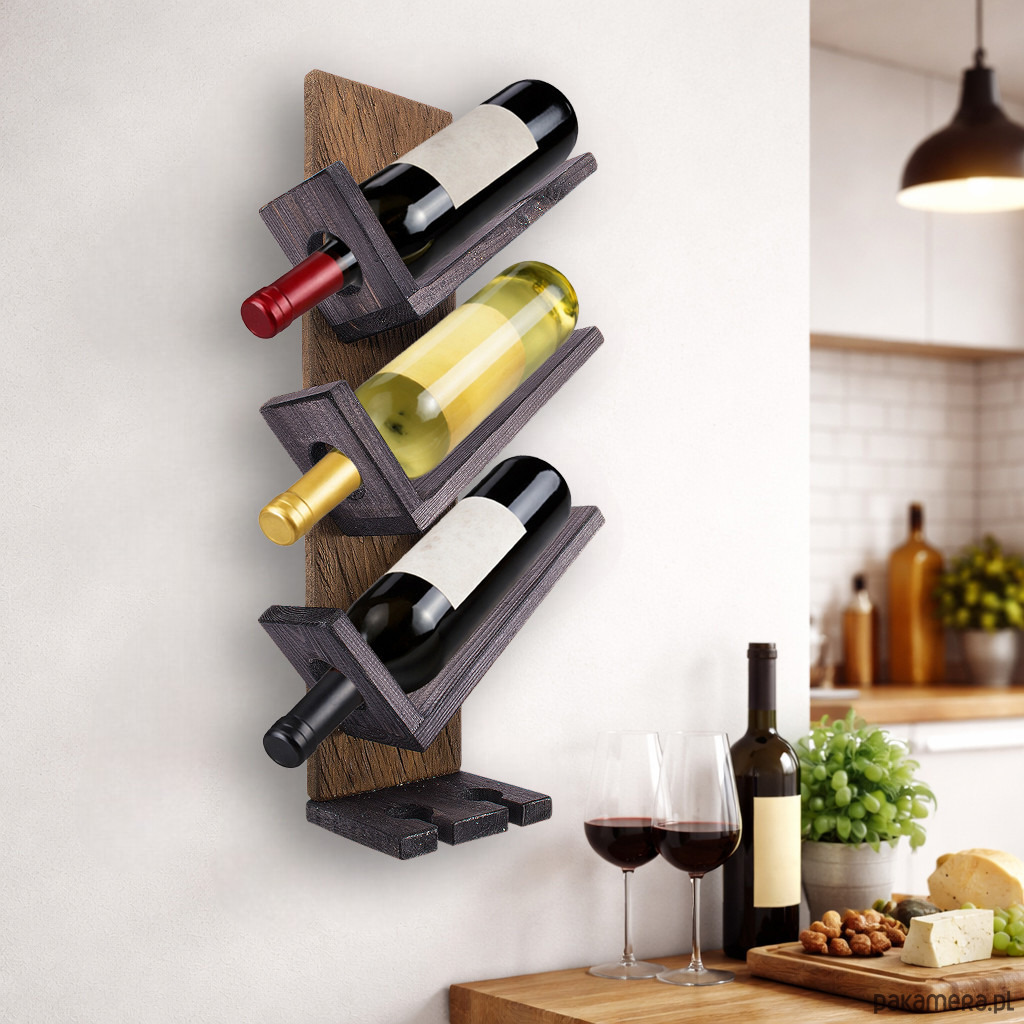 - drewniany wieszak ścienny na wino