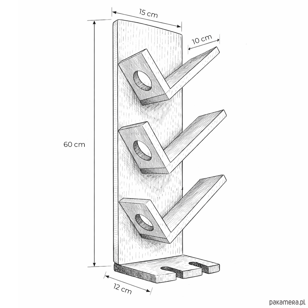 Produkt wykonano z drewna sosnowego, które nadaje mu naturalny charakter i solidny wygląd. Brązowe wykończenie podkreśla strukturę drewna i sprawia, że wieszak staje się nie tylko praktycznym organizerem, ale również dekoracją ściany.