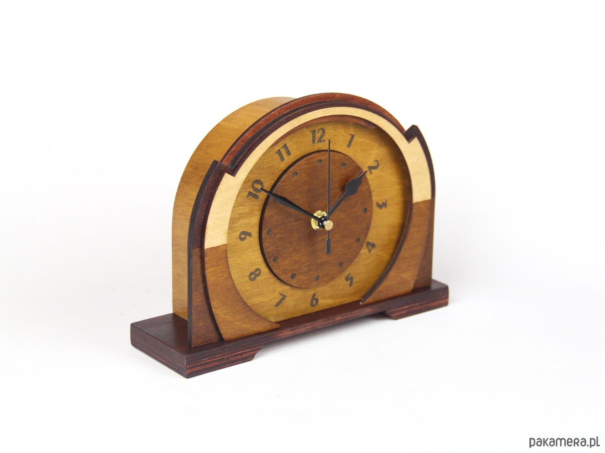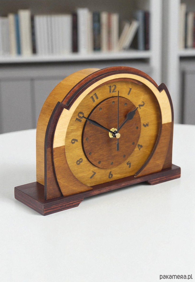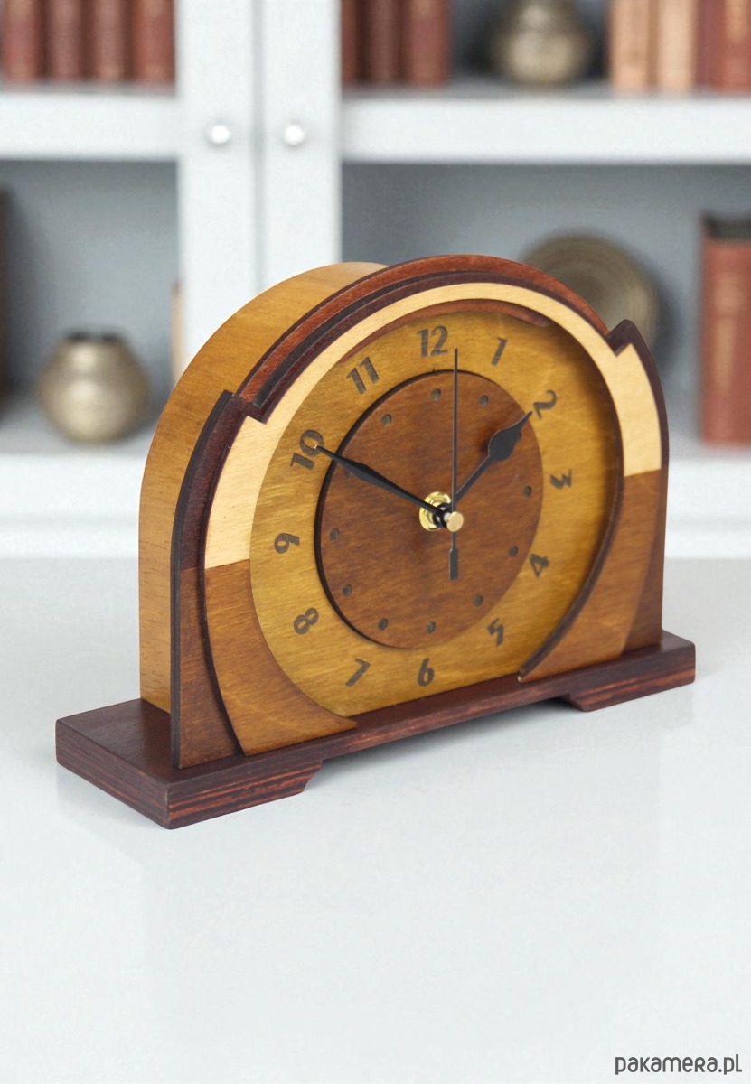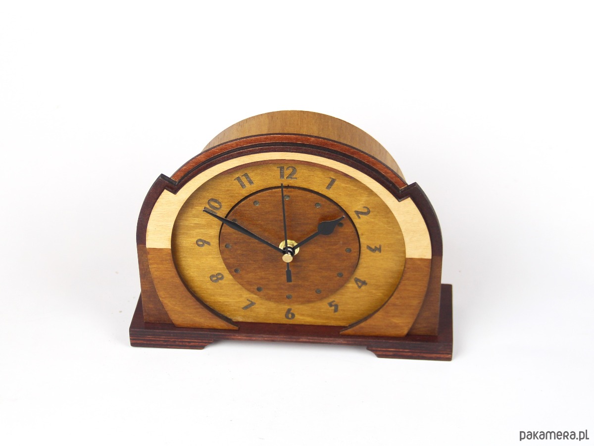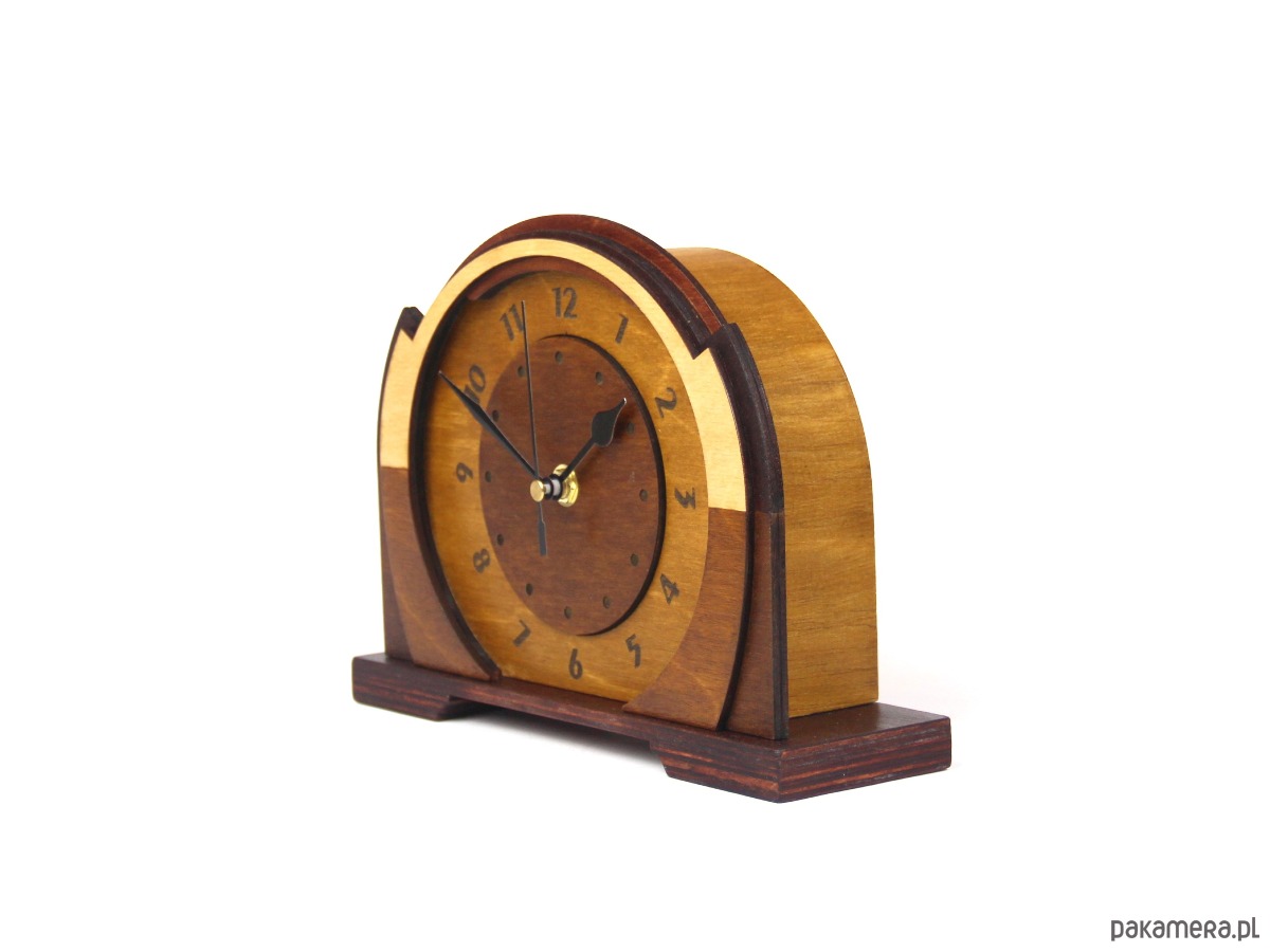 Drewniany zegar art deco style - dekoracja kominka i biurka