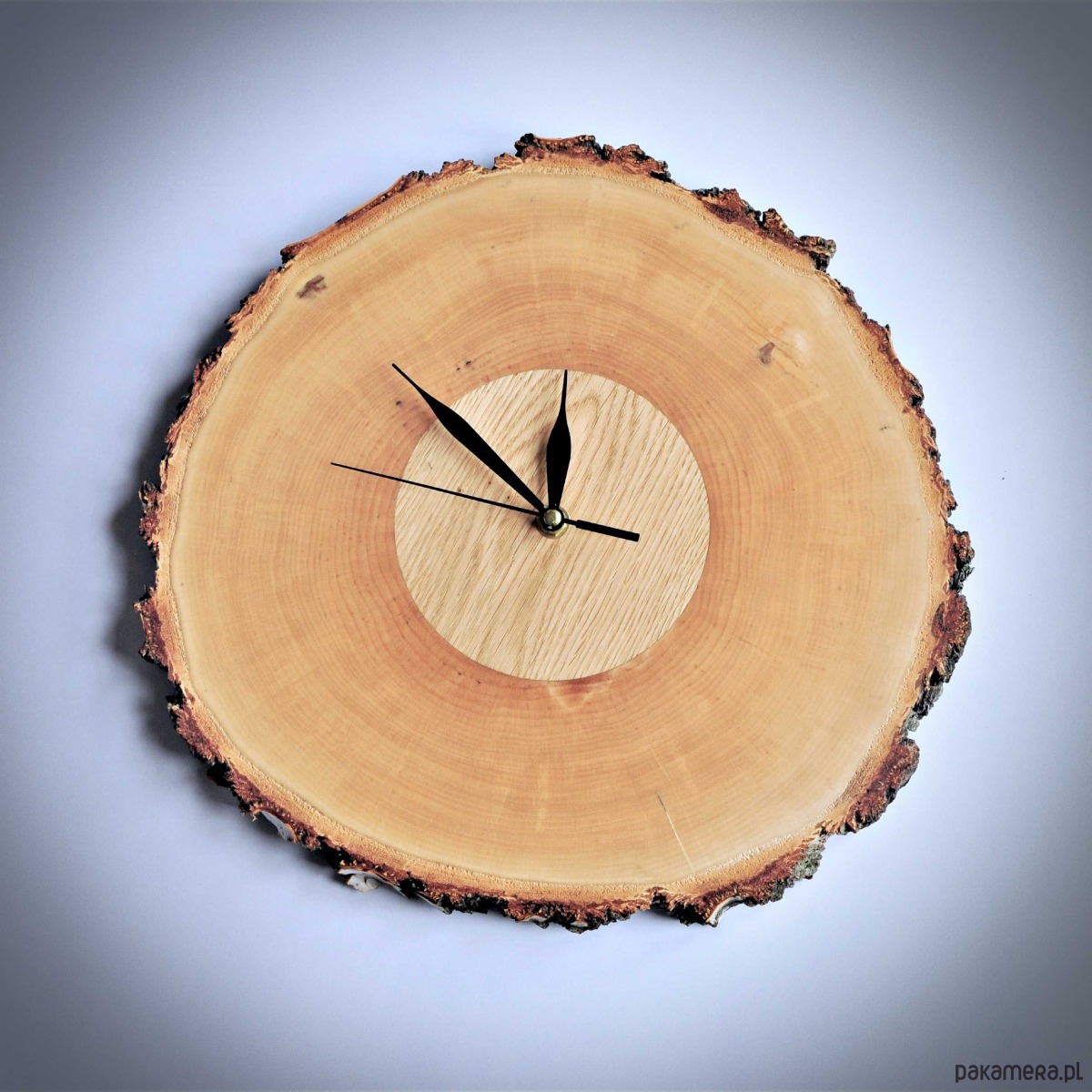 Wyjątkowy zegar ścienny z litego drewna, wykonany z plastra brzozowego z wykończeniem z dębu, to połączenie prostoty, elegancji i natury. Każdy egzemplarz jest unikatowy – dzięki naturalnym słojom, barwie i nieregularnej strukturze drewna, żaden zegar nie jest identyczny.