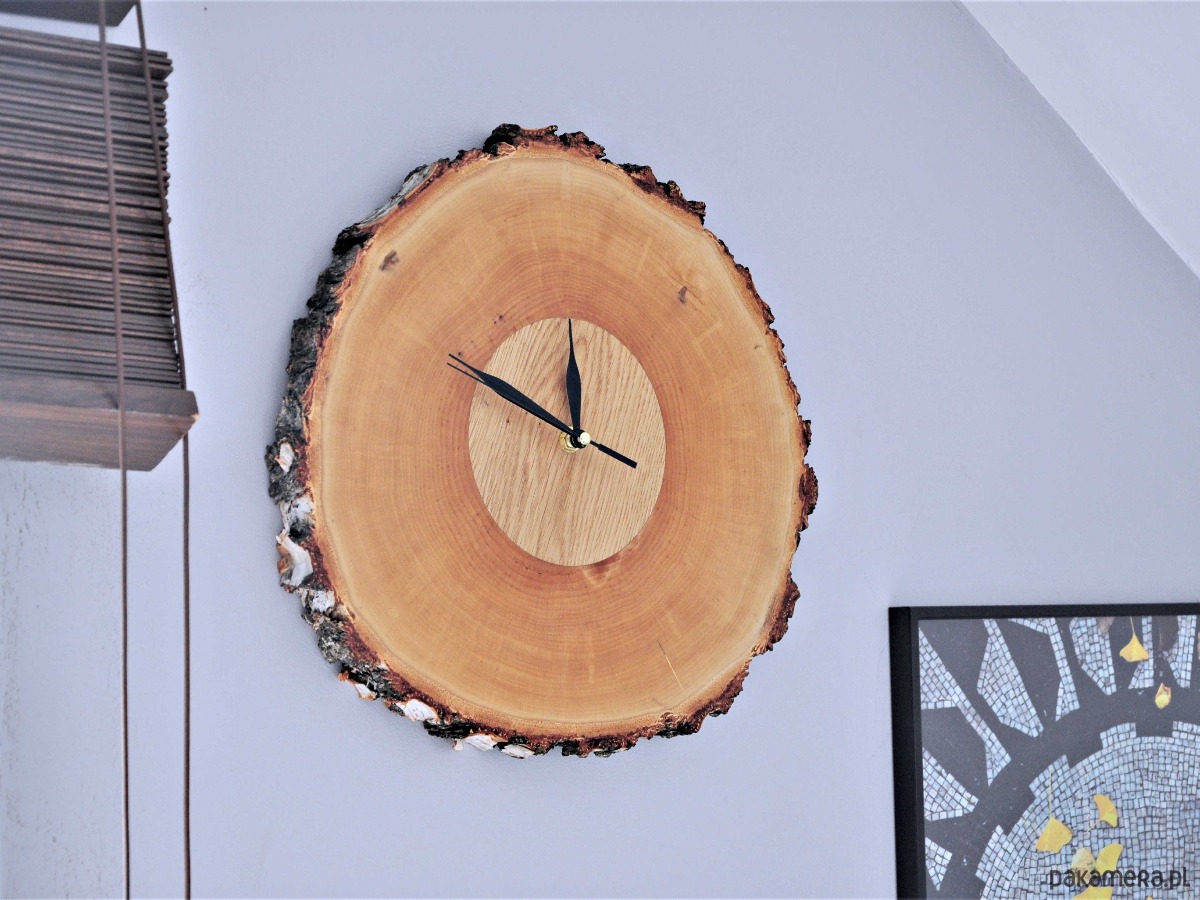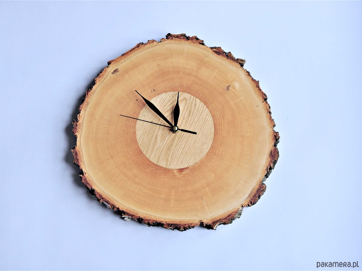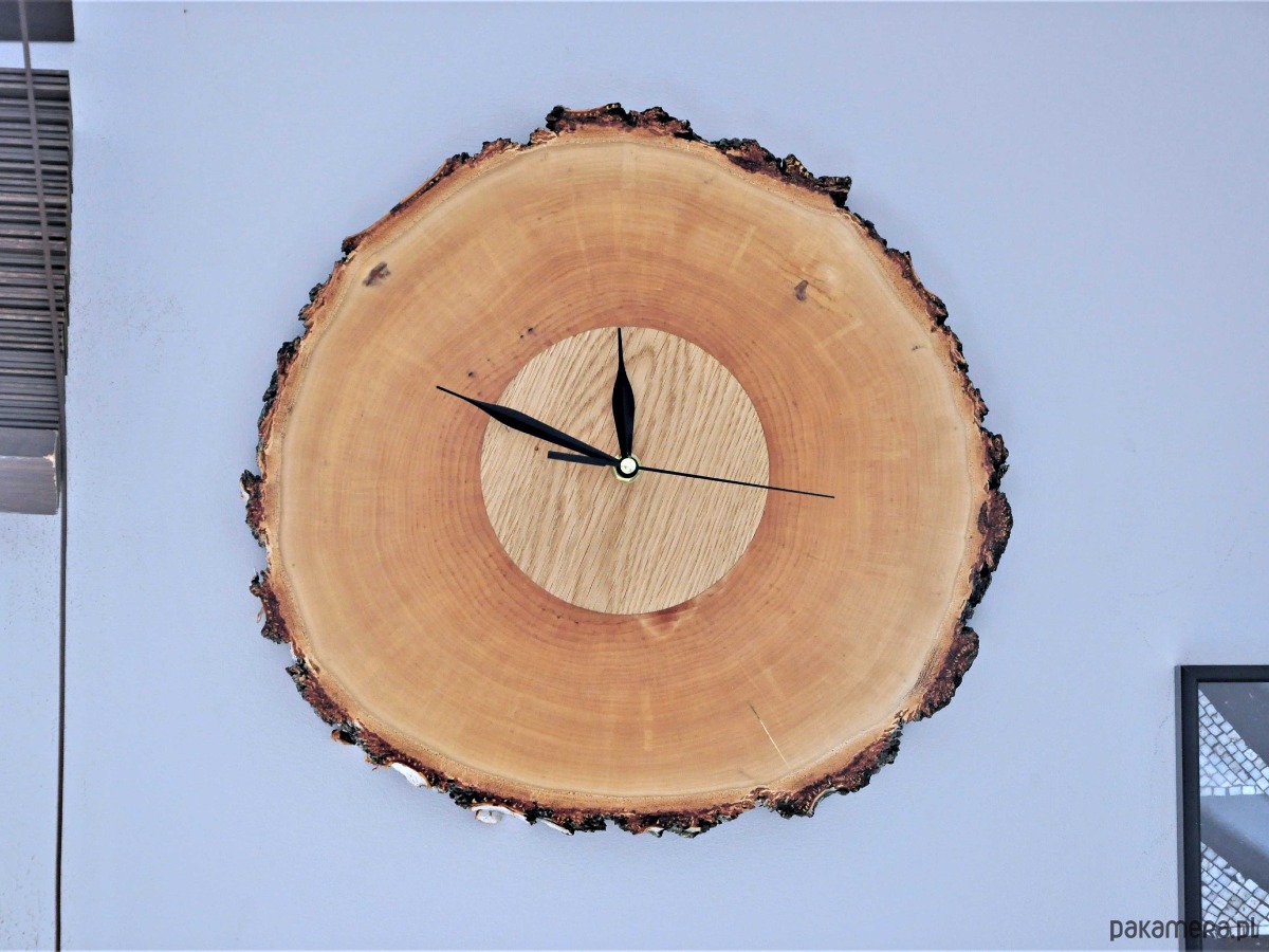 Drewniany zegar ścienny z plastra drewna – naturalny design