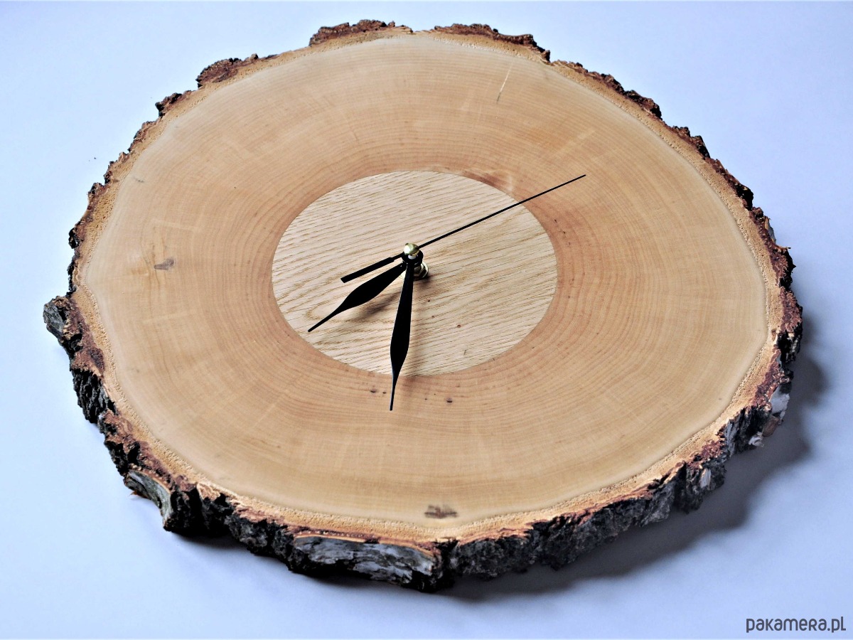 Dodaj odrobinę natury do swojego wnętrza – wybierz drewniany zegar na ścianę z plastra drewna i ciesz się stylem, który nigdy nie wychodzi z mody.