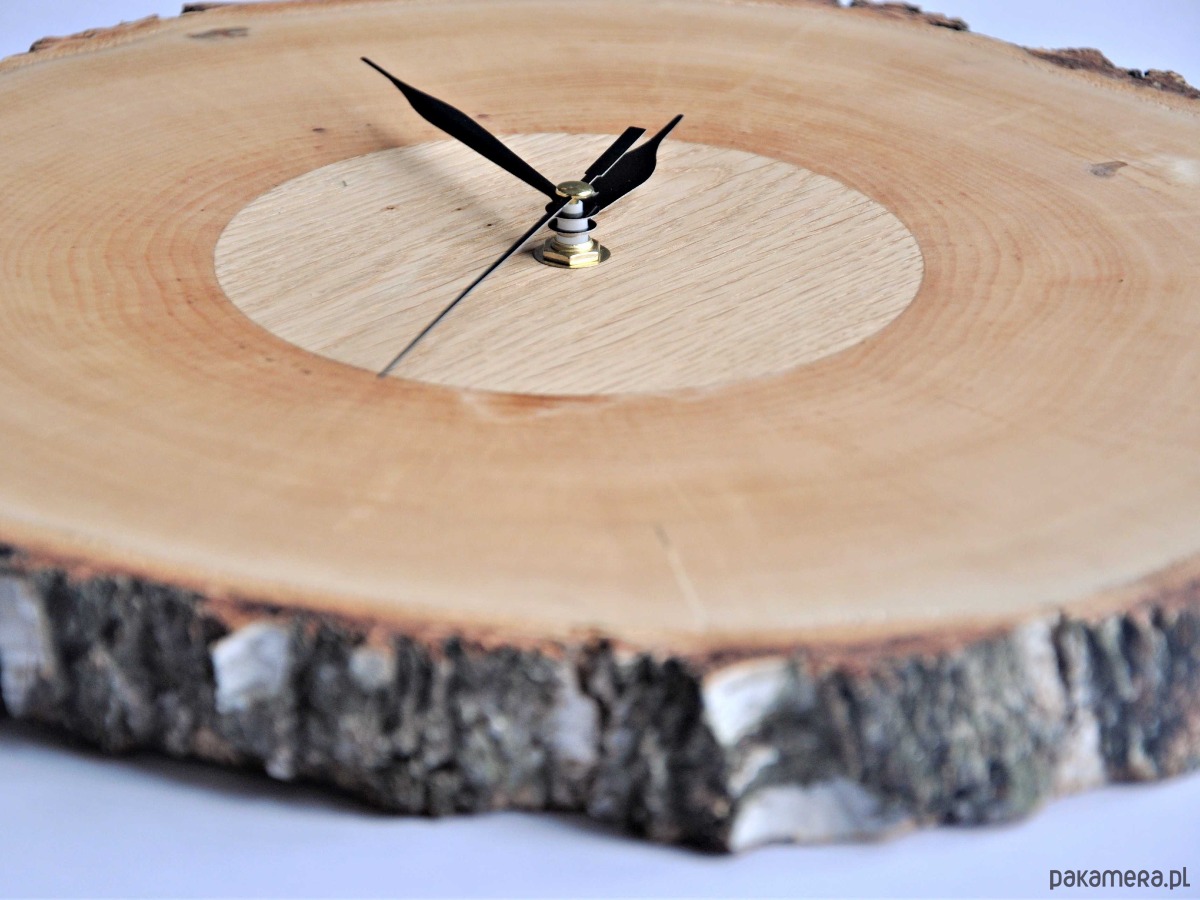 Każdy zegar tworzony jest ręcznie, co sprawia, że różnice w układzie słojów czy drobne pęknięcia mogą się pojawić – to naturalny proces pracy drewna, który nadaje mu niepowtarzalny charakter.