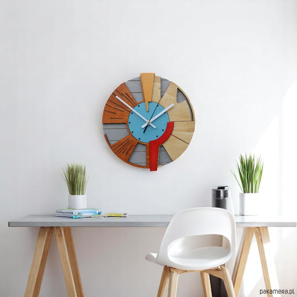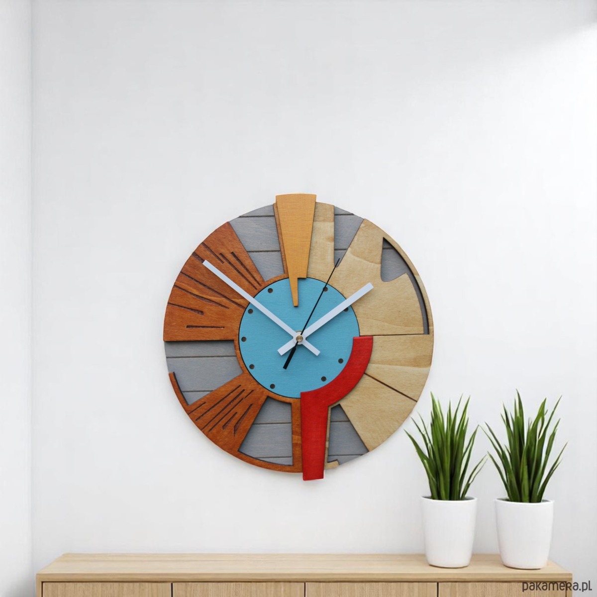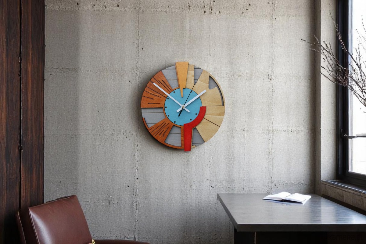 Drewniany Zegar Ścienny DużyGeometryczny /48cm - Cichy Mechanizm