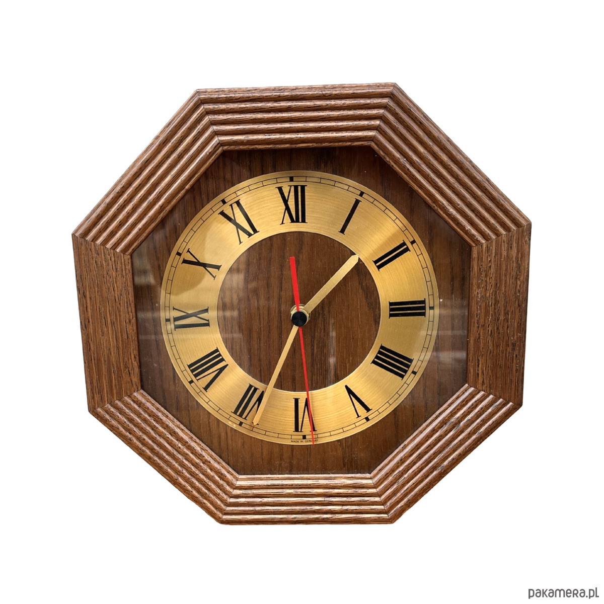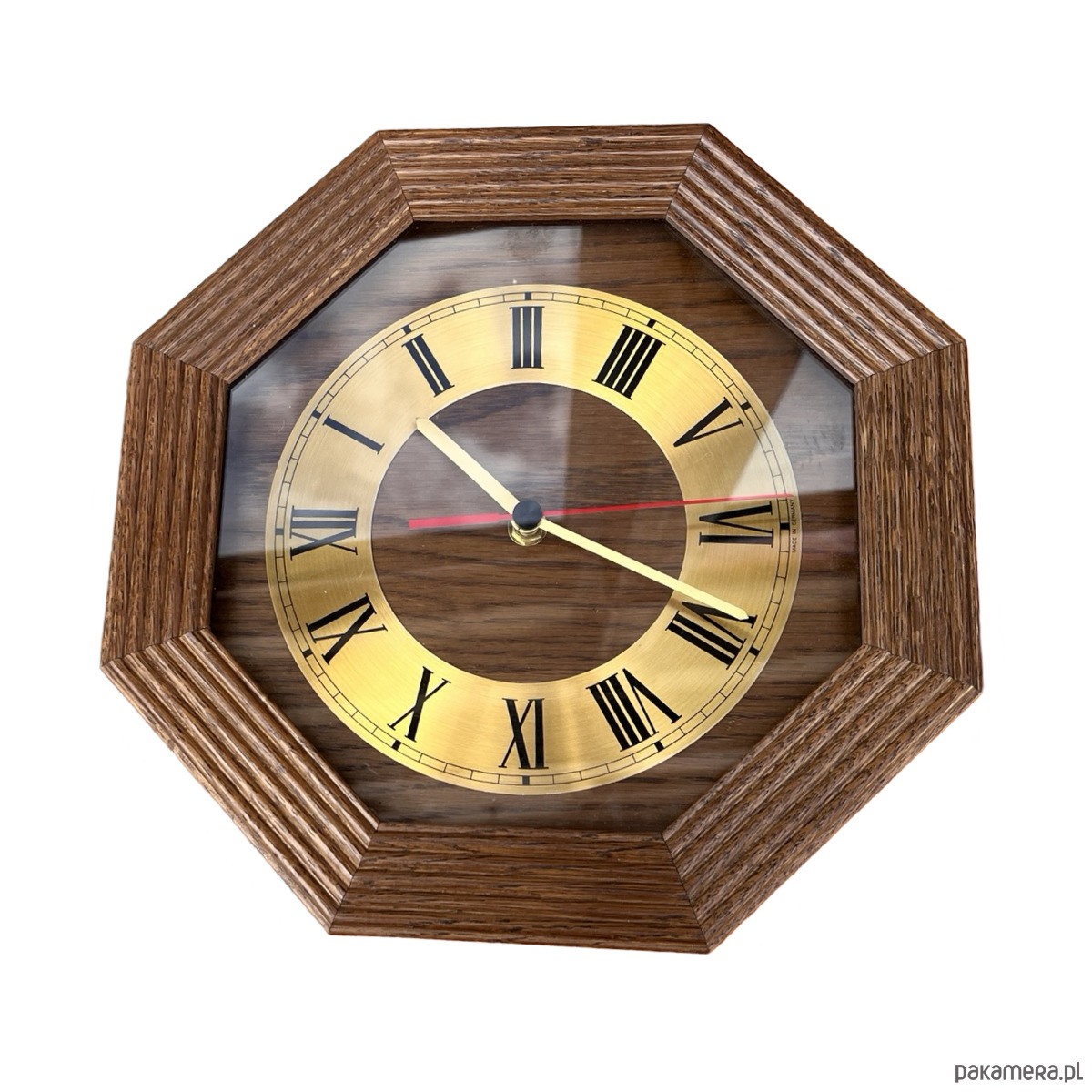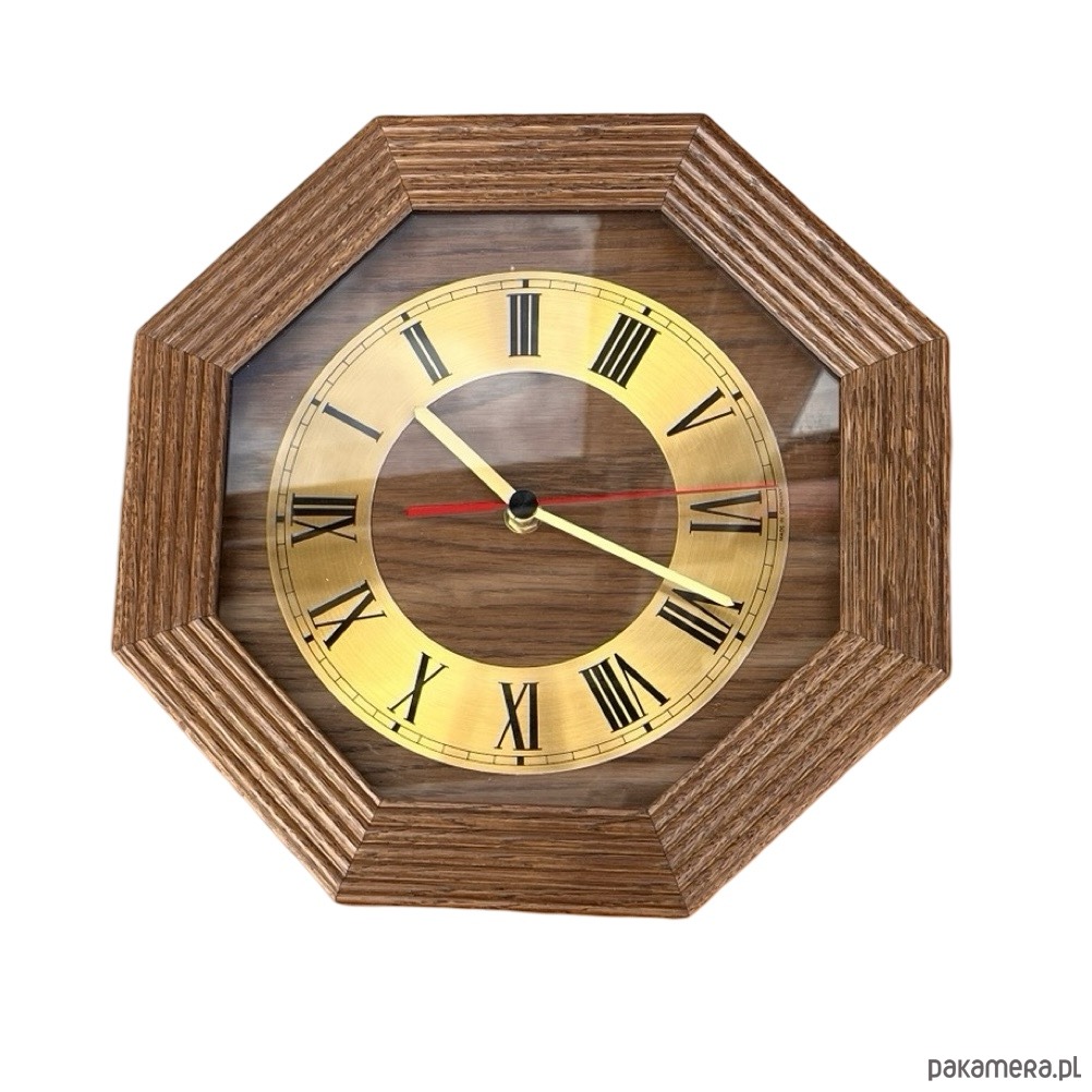 Drewniany zegar ścienny EBG, Niemcy lata 80.