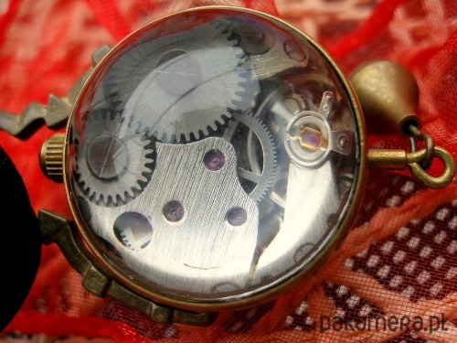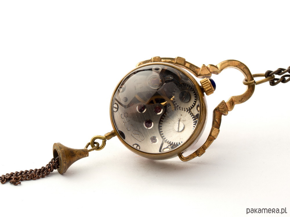 Jest to mała perełka, która zachwyca każdego kto na nią spojrzy. Unikalny wisior a jednocześnie pełni funkcję mechanicznego, ręcznie nakręcanego zegarka, stylizowana oryginalnym japońskim wzorem z roku 1882, przyciąga wzrok swoją oryginalnością i pięknem. Wisior wykonany jest z niezwykłą precyzją z miedzi i brązu, a całość zatopiona jest w szklanej, przezroczystej, delikatnie powiększającej kuli, pozwalającej na obserwację działania maleńkiego serduszka zegarka.