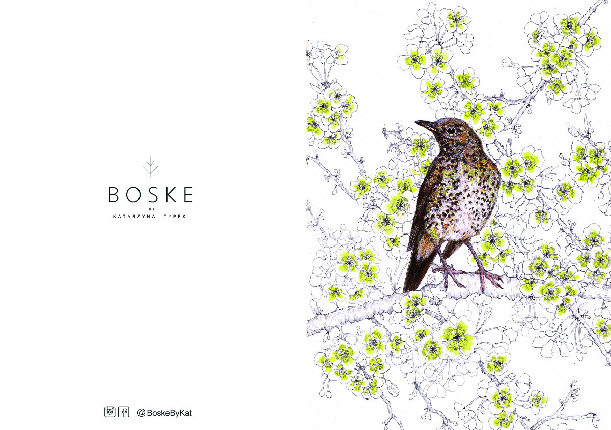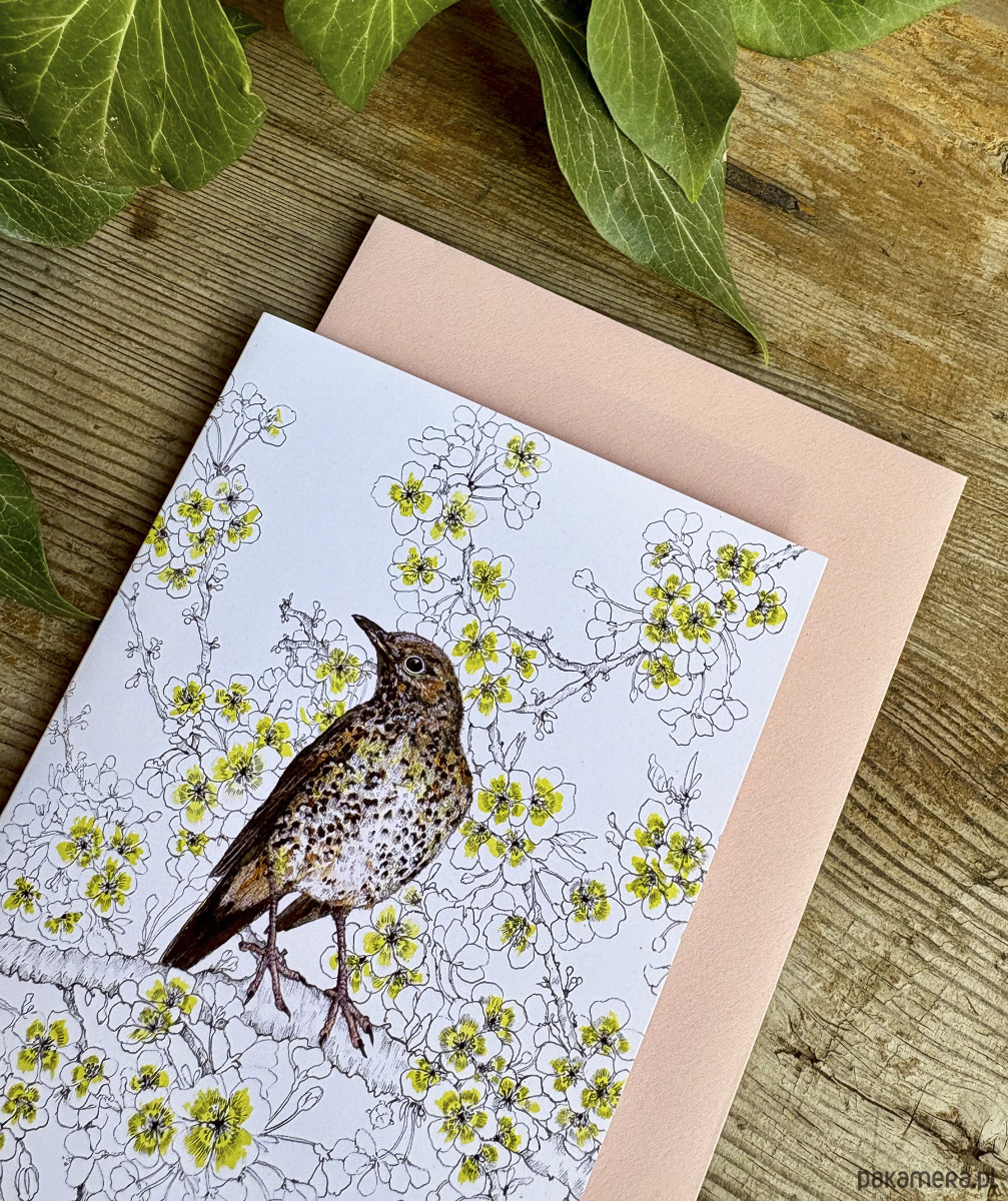 Drozd Śpiewak - Kartka- Grafika- Ilustracja- Ptaki