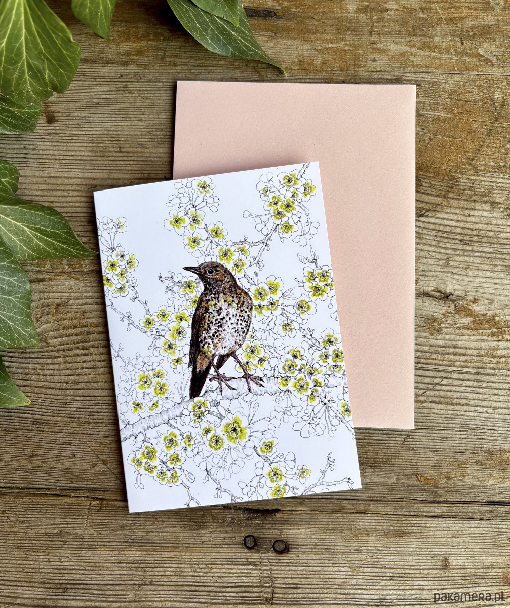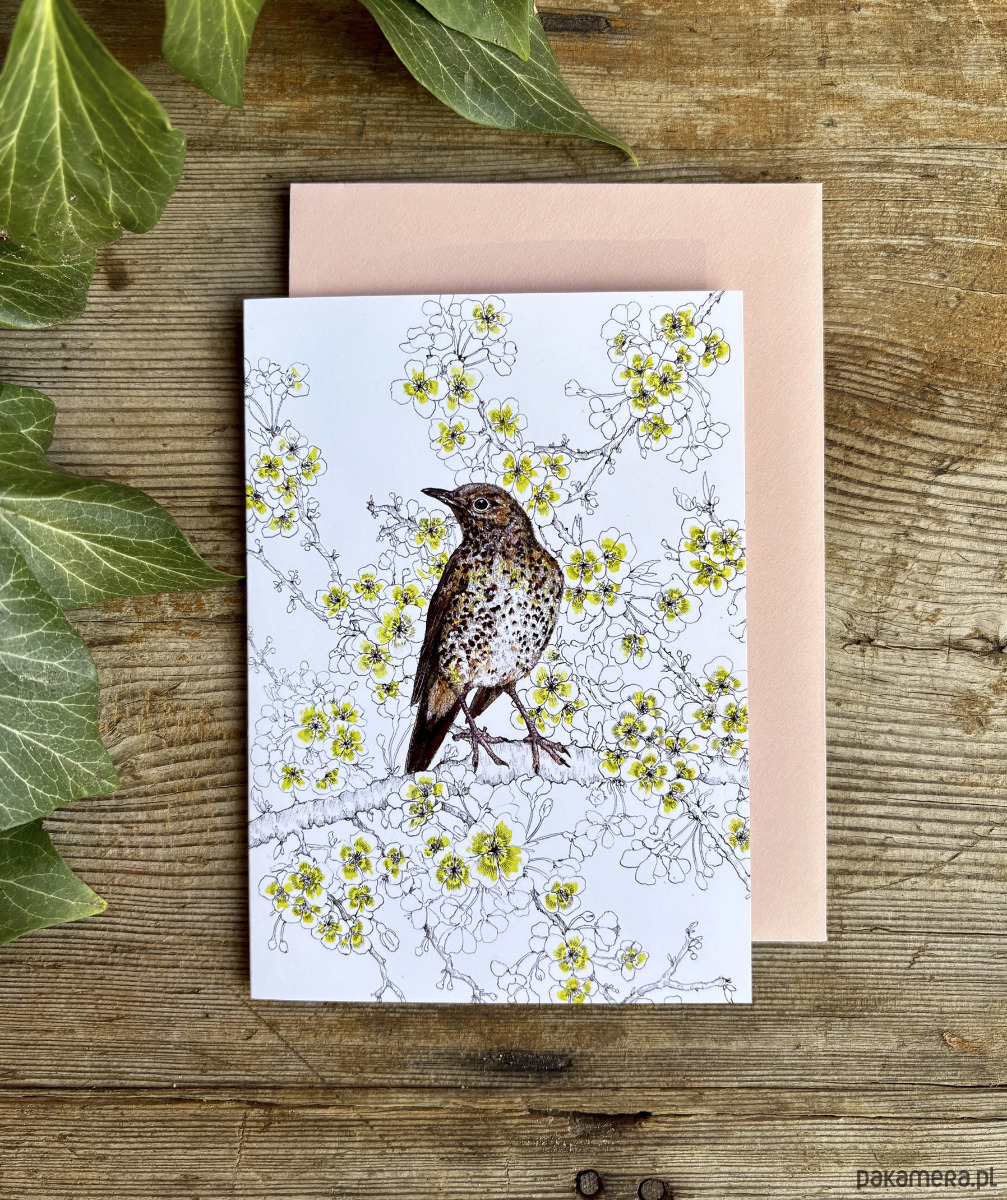Drozd Śpiewak - Kartka- Grafika- Ilustracja- Ptaki